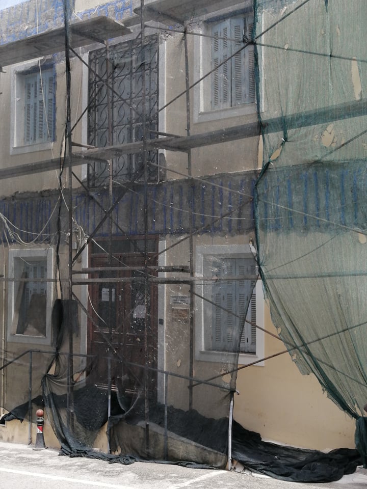Ειδικότερα, τις τελευταίες ημέρες έχουν τοποθετηθεί σκαλωσιές στην είσοδο του κτιρίου που στεγάζει το Κέντρο Κοινότητας, αλλά και το ΚΑΠΗ Ερμούπολης προκειμένου να υλοποιηθούν προγραμματισμένες εργασίες στις επιφάνειές του.