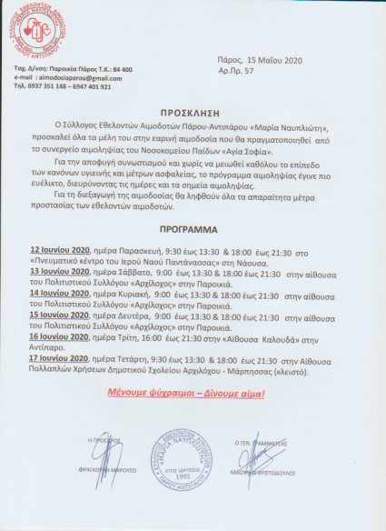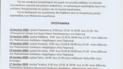 2. Πρόγραμμα εαρινής αιμοδοσίας Πάρου