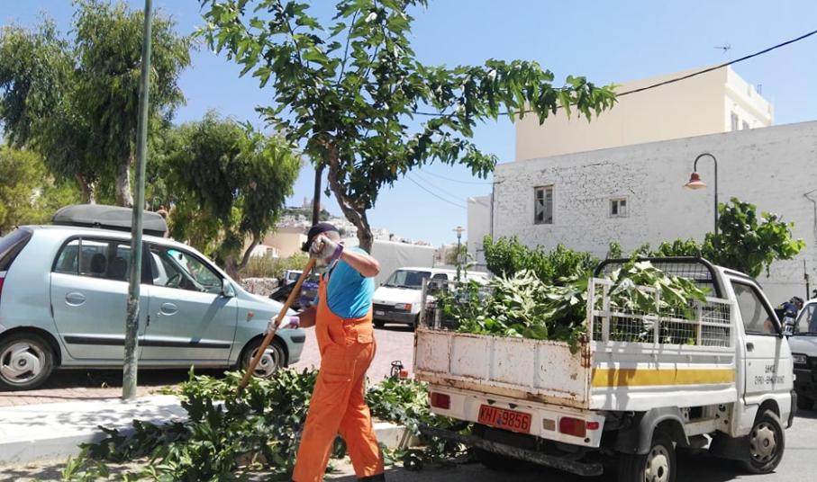 Αμέσως μετά από τις εργασίες κλαδέματος, τα κλαδιά που αφαιρέθηκαν, φορτώθηκαν σε μικρό δημοτικό όχημα, προκειμένου να απομακρυνθούν από την πλατεία.