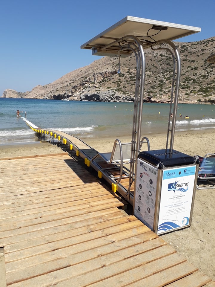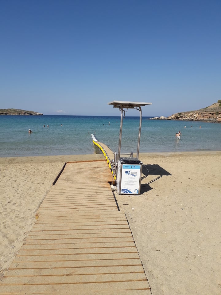 Στο πλαίσιο του προσβάσιμου τουρισμού και του γενικότερου σχεδιασμού της Δημοτικής Αρχής για την άρση του κοινωνικού αποκλεισμού και την κοινωνική ένταξη ευπαθών ομάδων πληθυσμού, πραγματοποιήθηκε αυτοψία από τον Δήμαρχο Σύρου – Ερμούπολης κ. Νικόλαο Λειβαδάρα, παρουσία του Αντιδημάρχου Τεχνικών Υπηρεσιών κ. Μηνά Αληφραγκή, του Αντιδημάρχου Τουρισμού κ. Παναγιώτη Κουταβά, της Εντεταλμένης Δημοτικής Συμβούλου κας Αγγελική Πρίντεζη και της Προέδρου της Τοπικής Κοινότητας Ποσειδωνίας κας Τέτας Πρίντεζη, στις παραλίες του Γαλησσά και των Αγκαθωπών, όπου τοποθετήθηκαν και εγκαταστάθηκαν συστήματα αυτόνομης πρόσβασης στη θάλασσα, διάδρομοι πρόσβασης από τους χώρους στάθμευσης, ξύλινο αποδυτήριο και ομπρέλες για χρήση από Α.μ.Ε.Α..