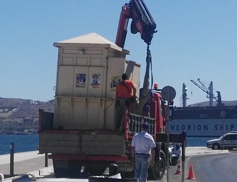 Παρελθόν αποτελεί το περίπτερο έναντι της τράπεζας Eurobank, από το παραλιακό μέτωπο της Ερμούπολης, καθώς εδώ και λίγες ημέρες απομακρύνθηκε κατόπιν απόφασης του Διοικητικού Συμβουλίου του Λιμενικού Ταμείου Σύρου.