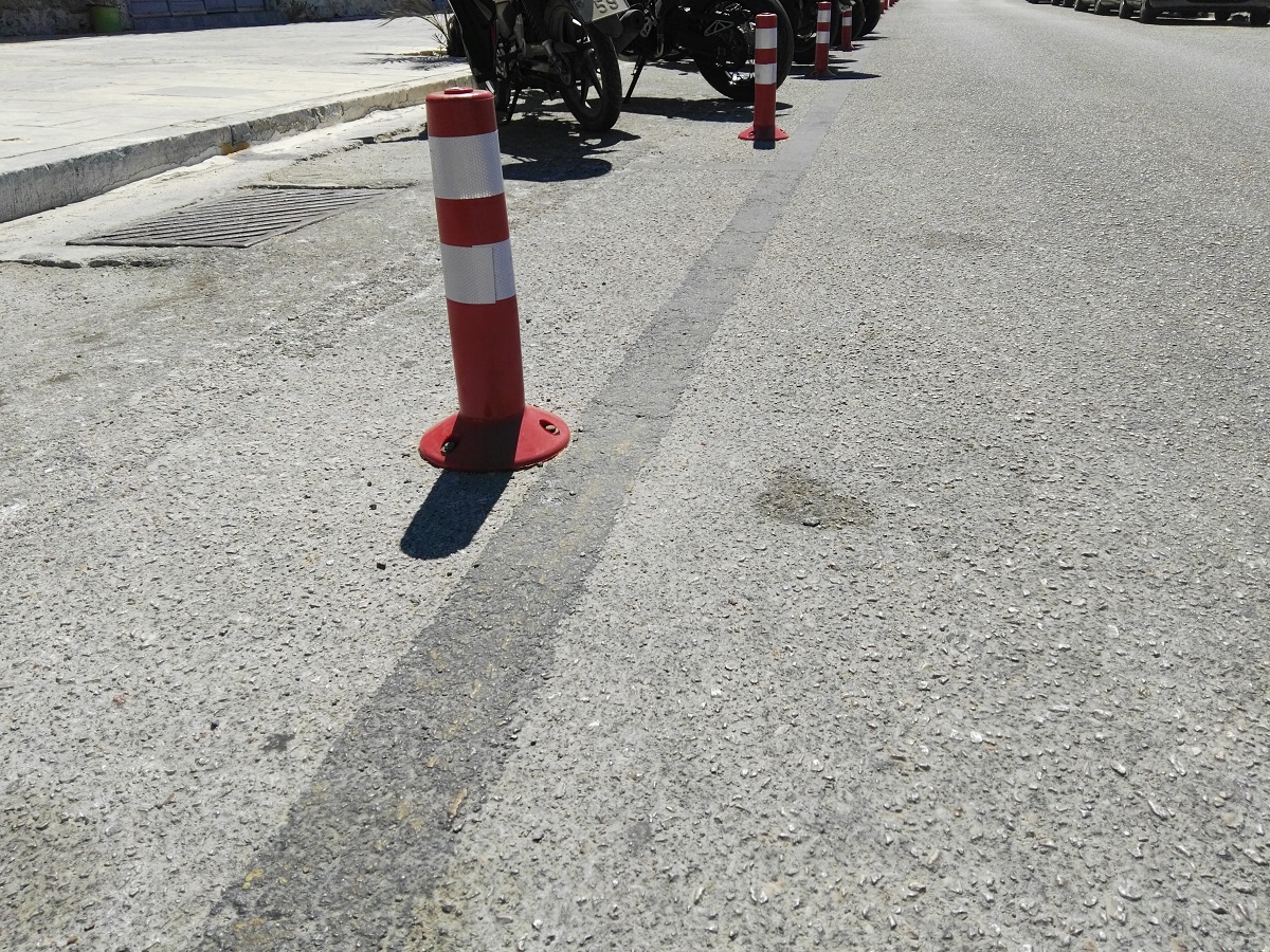 Ειδικότερα, απορία προκαλεί το γεγονός πως η Διοίκηση προχώρησε στην αντικατάσταση πολλών παλαιών εύκαμπτων κολωνακίων, στον χώρο στάθμευσης των δικύκλων (μπροστά από τα γραφεία του ΔΛΤΣ), ξεχνώντας όμως να μεριμνήσει για λίγα ακόμη, μπροστά από τη νησίδα που βρίσκεται παράλληλα με την προαναφερθείσα θέση.