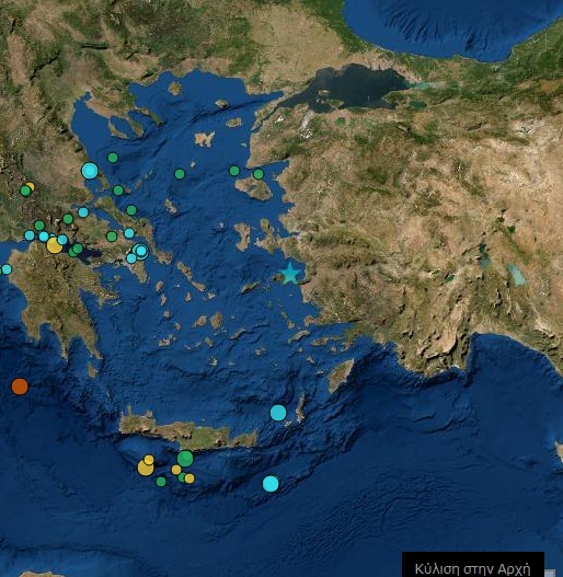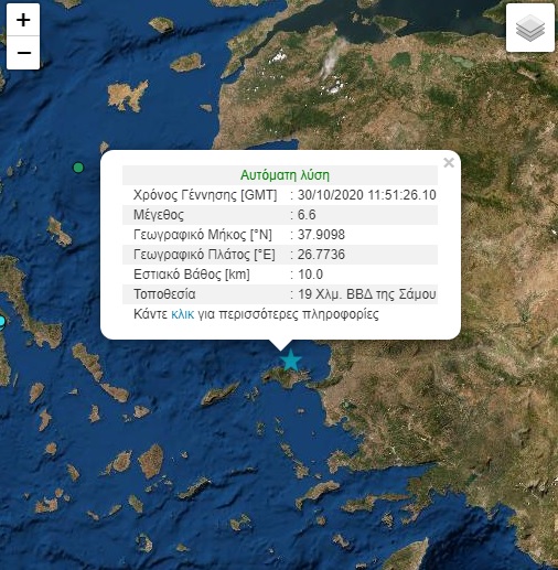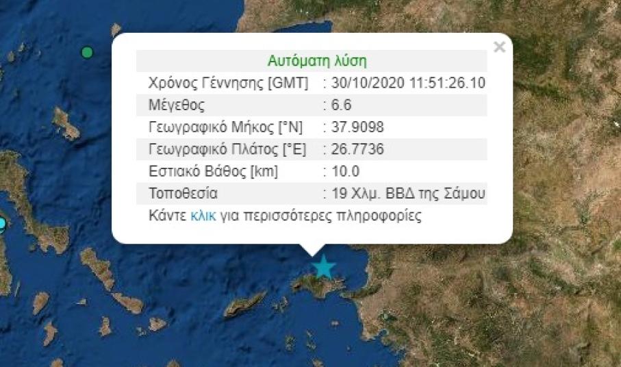 Ο σεισμός καταγράφεται βόρεια της Σάμου σε εστιακό βάθος 10 χλμ και στο νησί έχουν καταγραφεί υλικές ζημιές.