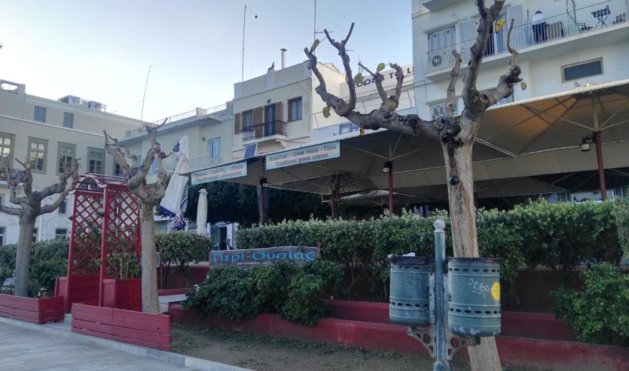 Συγκεκριμένα, καθ΄ όλη τη διάρκεια της προχθεσινής ημέρας, οι εργάτες προχώρησαν στο κλάδεμα των δέντρων που βρίσκονται επί του πεζοδρομίου και μπροστά από τους χώρους ανάπτυξης των τραπεζοκαθισμάτων των – κλειστών λόγω πανδημίας - επιχειρήσεων εστίασης, με αποτέλεσμα να αλλάξει ριζικά η εικόνα της πλατείας.