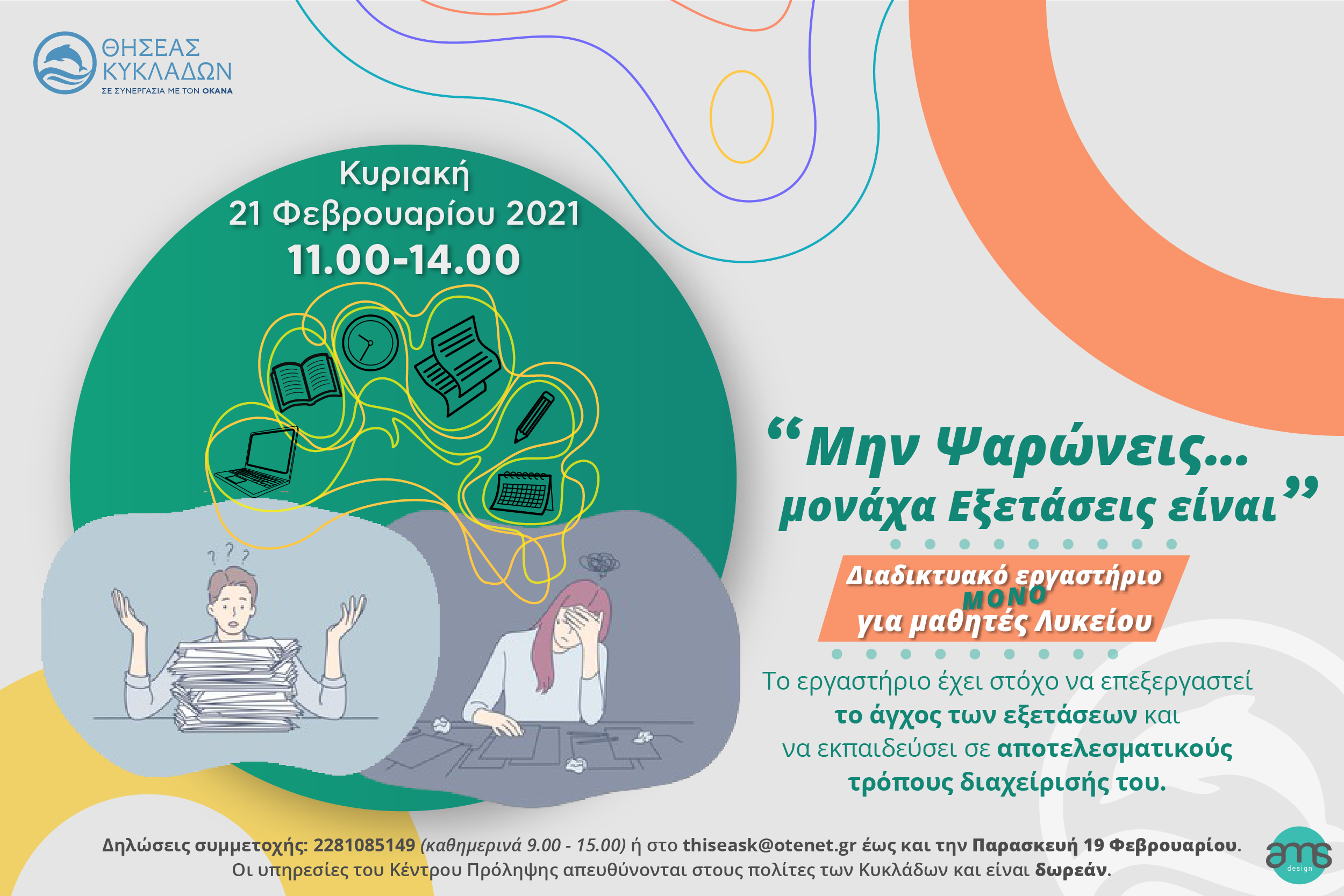 · Εργαστήριο για μαθητές Λυκείου με θέμα το άγχος των εξετάσεων: http://thiseaskyklades.gr/?p=4619