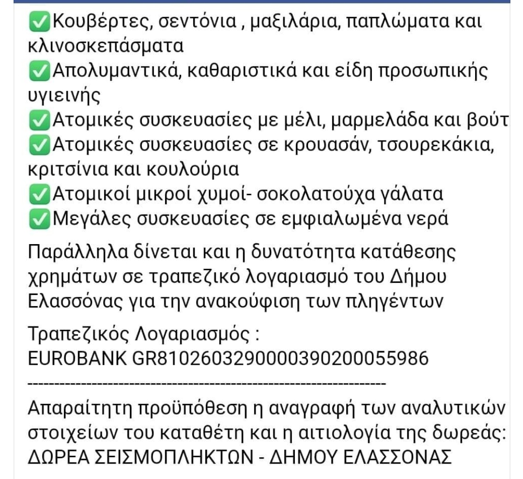 Συγκεντρώνουμε στον χώρο μας είδη πρώτης ανάγκης για τους πληγέντες από τους σεισμούς της Θεσσαλίας.