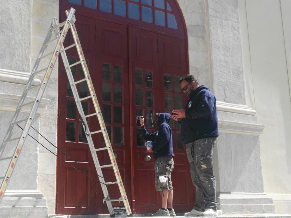 Συγκεκριμένα, χθες το πρωί ο εργολάβος προχώρησε σε συμπληρωματικές εργασίες βαψίματος ορισμένων σημείων τόσο στις εισόδους, όσο και στα θολωτά παράθυρα, προκειμένου να “επουλώσει” σκασίματα, τα οποία και παρατηρήθηκαν από τον περασμένο Σεπτέμβριο μέχρι και σήμερα.