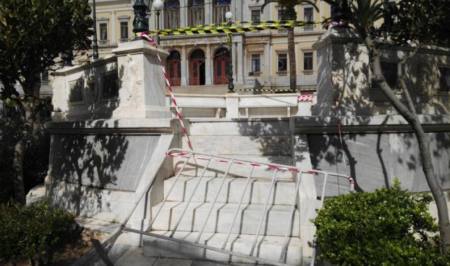 Αλλαγή “πλεύσης” για την αποκατάσταση της μαρμάρινης εξέδρας στην πλατεία Μιαούλη θα ακολουθήσει ο Δήμος Σύρου – Ερμούπολης, καθώς κατά την εξέλιξη των πρώτων εργασιών για το τμήμα που βρίσκεται η ανάγλυφη αποτύπωση του “Απόλλωνα” διαπιστώθηκαν εμπόδια.