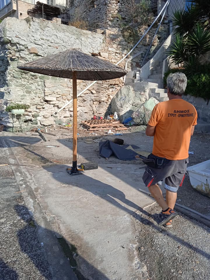 Την απομάκρυνση των αυθαίρετων κατασκευών γνωστοποίησαν και με σχετικές αναρτήσεις τους στα social media ο Αντιδήμαρχος Τεχνικών Υπηρεσιών, Μηνάς Αληφραγκής και η πρόεδρος του Λιμενικού Ταμείου Σύρου, Κανδιώ Μαραγκού.