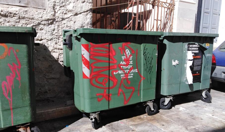 Σε νέο κύκλο επίθεσης ενάντια της καλής εικόνας του ιστορικού κέντρου της Ερμούπολης προχώρησαν ασυνείδητοι, οι οποίοι έβαψαν με σπρέι πολλά σημεία νεοκλασικών κτιρίων, επιφάνειες κάδων ανακύκλωσης, καθώς και πινακίδες του ΚΟΚ.