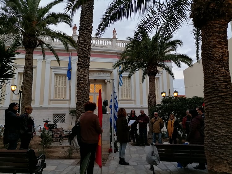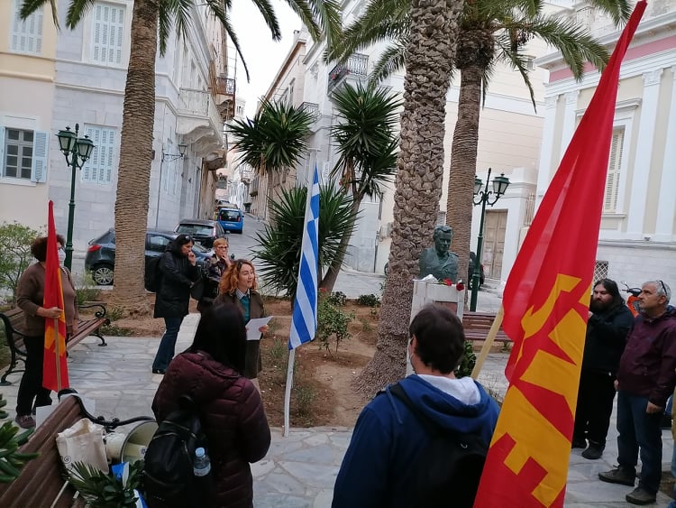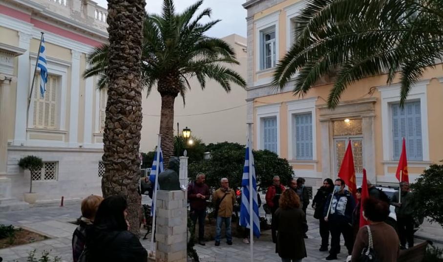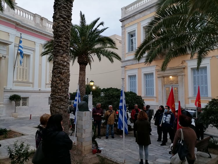 Κατάθεση στεφάνου πραγματοποίησε στην προτομή του αντιστράτηγου Σπύρου Μουστακλή η Κομματική Οργάνωση Βάσης Σύρου του ΚΚΕ, τιμώντας τον ηρωικό ξεσηκωμό του Πολυτεχνείου.