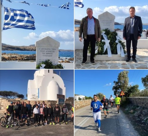 Οι φίλοι δρομείς από την Πάρο, με πρωτοβουλία του Τάκη Αποστολόπουλου, κάλυψαν τρέχοντας την απόσταση Λιμάνι - Άγιος Γεώργιος τιμώντας και αυτοί με τον τρόπο τους την ξεχωριστή αυτή μέρα και τους ευχαριστούμε θερμά για αυτό.