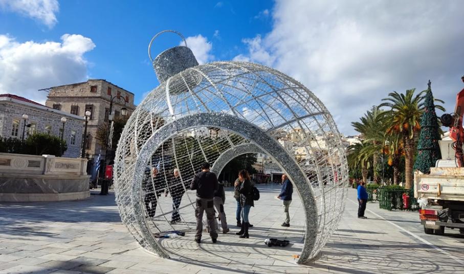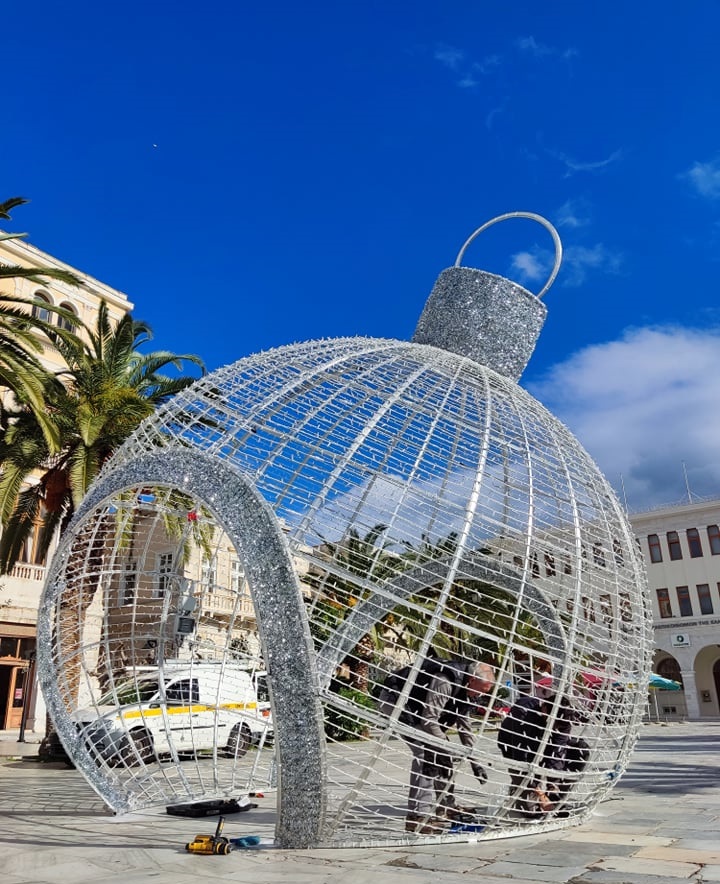 Αξίζει να προστεθεί ότι σήμερα το πρωί στην πλατεία Μιαούλη ο Δήμος πρόσθεσε μία τεράστια χριστουγεννιάτικη μπάλα σε κεντρικό σημείο, η οποία το βράδυ θα φωτίζεται.