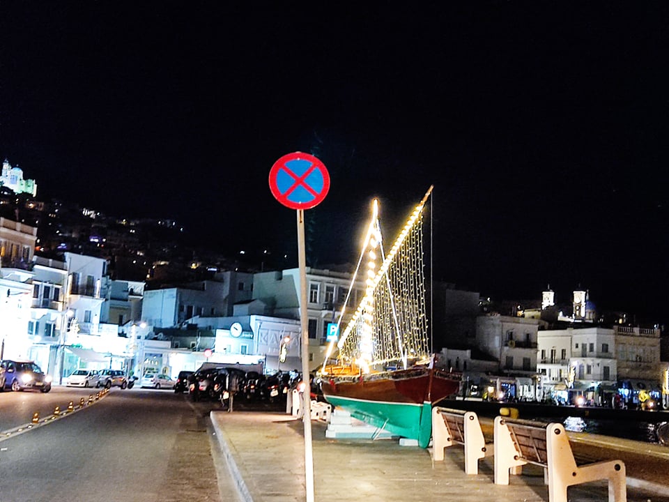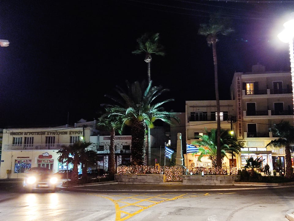Πέραν της φωταγώγησης του Χριστουγεννιάτικου δέντρου στην πλατεία Μιαούλη και των φωτιστικών στύλων περιμετρικά του κέντρου της, έχουν φωτιστεί με ειδικές “γιρλάντες” και οι μεγάλοι στύλοι στο παραλιακό μέτωπο της Ερμούπολης, καθώς όμως και η οδός Νικ. Μανδηλαρά.
