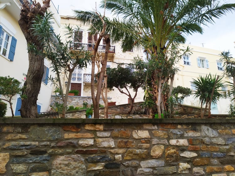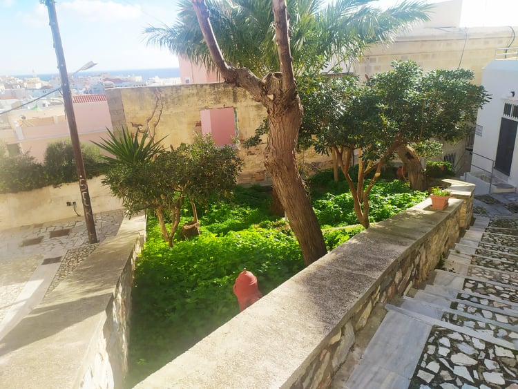 Στο μικρό κηπάριο στο τέλος της οδού Πετροκοκκίνου περίπου όπισθεν του Ι.Ν. Κοιμήσεως στην Ερμούπολη