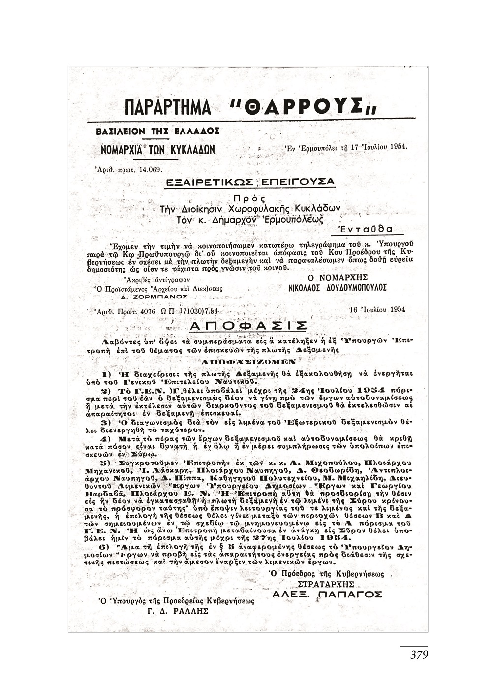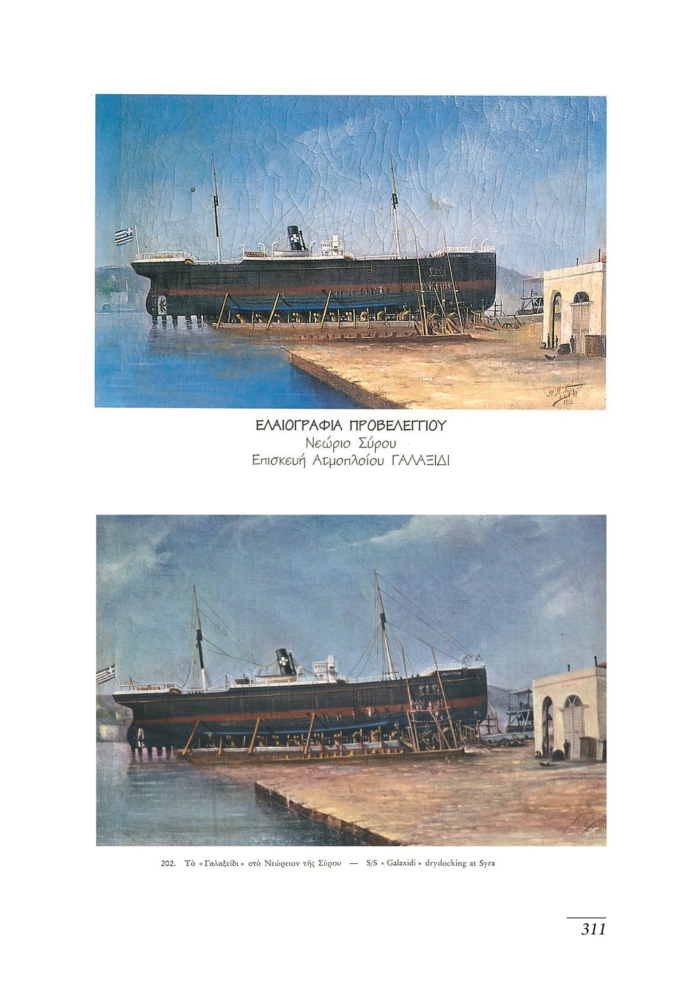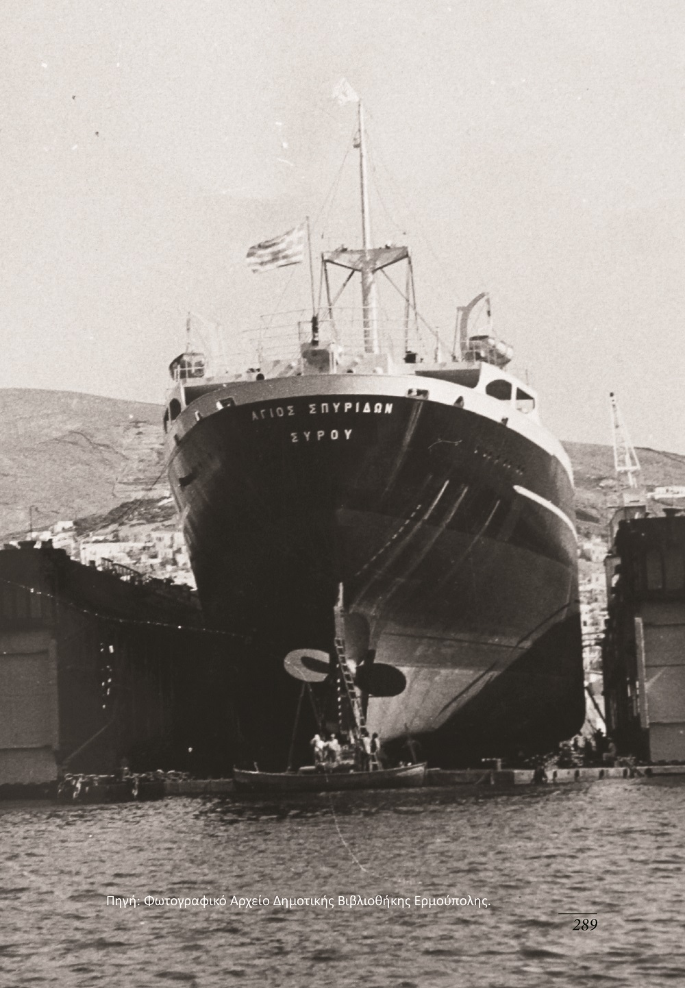 Το εξώφυλλο του βιβλίου “κοσμεί” μία φωτογραφία με την τελετή των εγκαινίων της κρατικής δεξαμενής (23 Μαρτίου 1955) που λήφθηκε από το φωτογραφικό αρχείο της Δημοτικής Βιβλιοθήκης Ερμούπολης ενώ το οπισθόφυλλο φέρει την υπογραφή του Κωνσταντίνου Καταγά και αποτυπώνει τη Σύρα, τα ναυπηγεία και τους ταρσανάδες σε ένα μοναδικής αξίας σχέδιο. Η εκτύπωση και η βιβλιοδεσία του τόμου έγινε στην Τυποκυκλαδική Α.Ε. και η διάθεσή του πραγματοποιείται από τα Εκπαιδευτήρια Άγιος Παύλος.