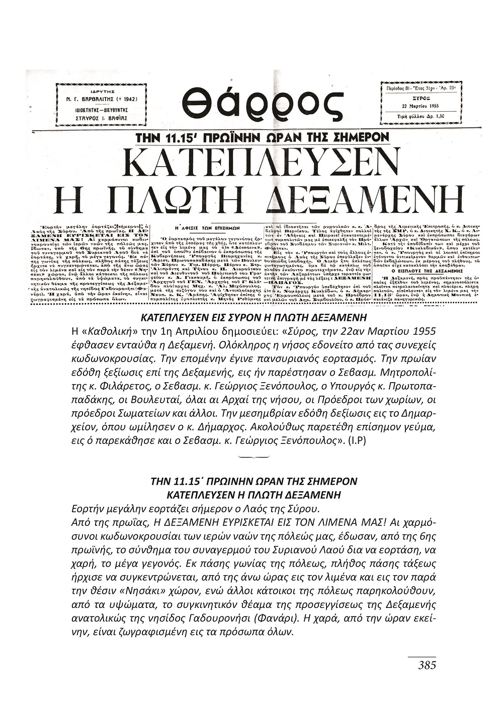 Πρέπει να σημειωθεί τέλος, πως ο εκδότης απευθύνει δημοσίως ευχαριστίες σε όσους βοήθησαν στην μεγάλη προσπάθεια συγκέντρωσης του απαραίτητου υλικού και των απαιτούμενων ντοκουμέντων και στοιχείων για την έκδοση αυτού του τόμου των Συριανών Γραμμάτων.
