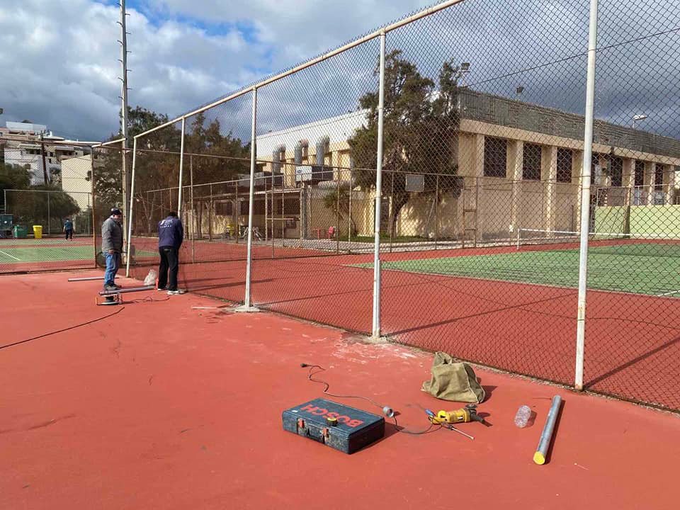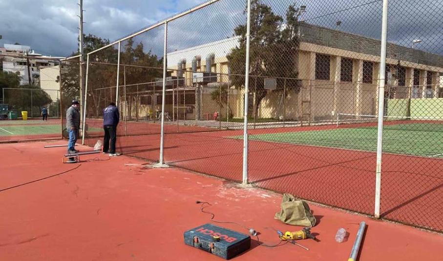 Ειδικότερα, οι εργάτες του Δήμου, προ τριών ημερών προχώρησαν σε αποκαταστάσεις και ενισχύσεις του διαχωριστικού πλέγματος των γηπέδων τένις στην Ερμούπολη, καθώς και σε ισχυροποίηση των βάσεων της περίφραξης συνολικά, προκειμένου να αποφευχθούν μεγάλης έκτασης ζημιές, στα ανοικτά γήπεδα, όπου και οι άνεμοι δημιουργούν “δίνη”, από την ένταση με την οποίαν πνέουν.