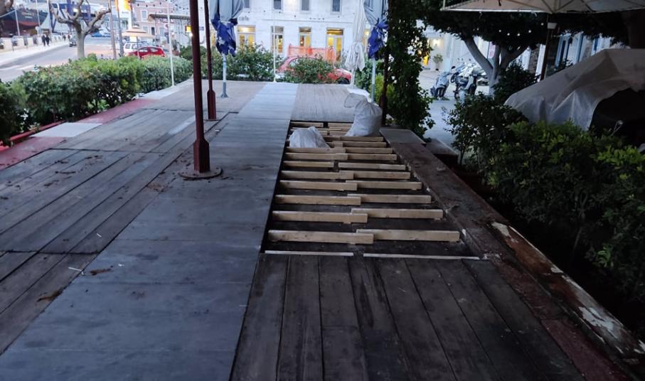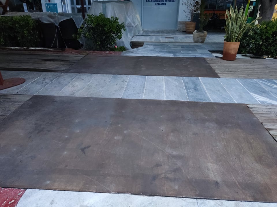 Σε αντικαταστάσεις των σχεδόν πλήρως κατεστραμμένων δαπέδων στην πλατεία Παπάγου προχώρησε ο Δήμος Σύρου – Ερμούπολης, προκειμένου να απαντήσει στην πράξη στα σοβαρά προβλήματα που αντιμετώπιζαν επί χρόνια, οι επιχειρηματίες που δραστηριοποιούνταν και παραμένουν στην περιοχή.