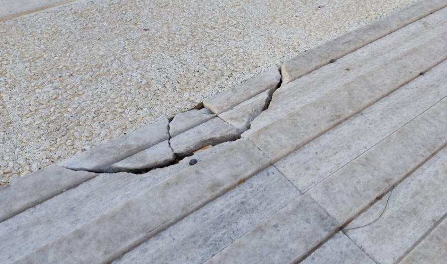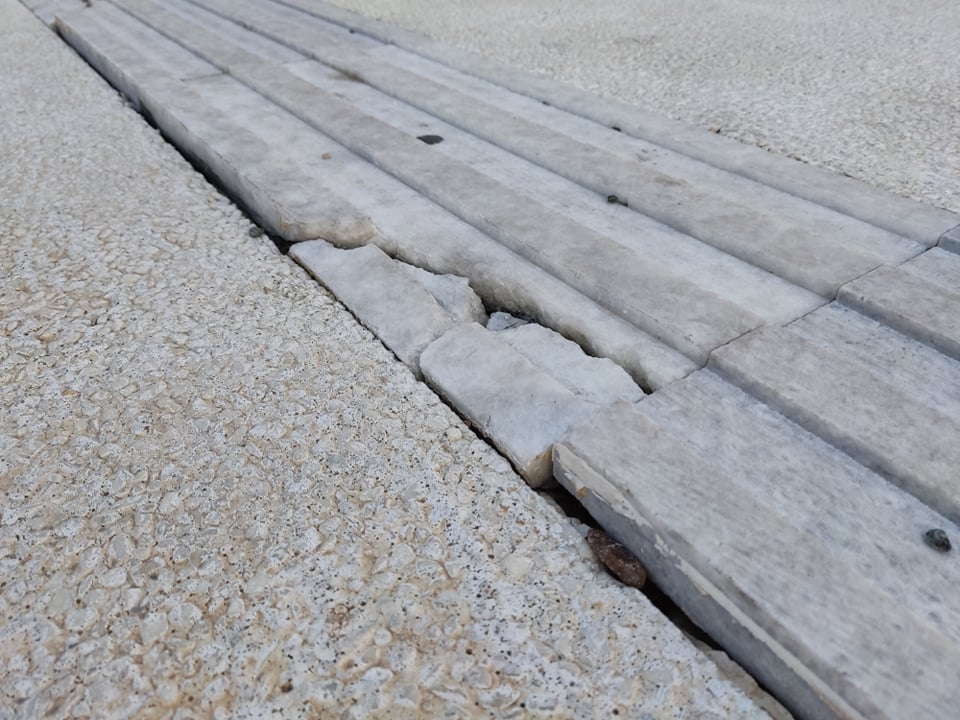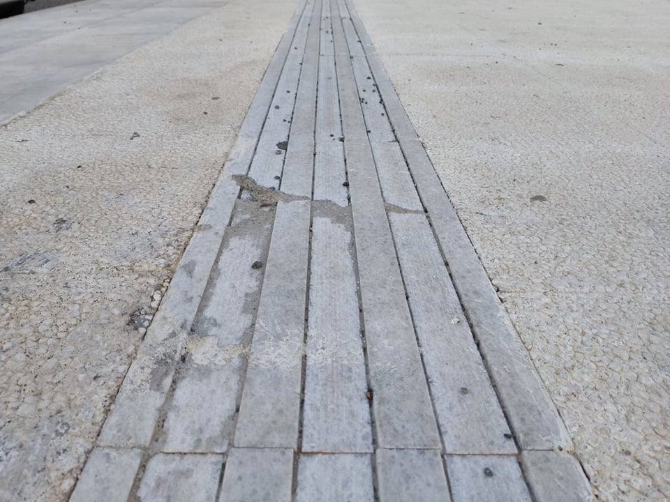 Ουσιαστικά οι εν λόγω οδηγοί όδευσης τοποθετήθηκαν κατά τη διάρκεια της ανάπλασης του παραλιακού μετώπου της Ερμούπολης και έκτοτε, δεν έχει υπάρξει καμία μέριμνα για την αντικατάσταση των σπασμένων τμημάτων και μαρμάρων, με αποτέλεσμα κατά μήκος του παραλιακού πεζοδρομίου να μην μπορεί να περπατήσουν συνάνθρωποί μας με προβλήματα όρασης.