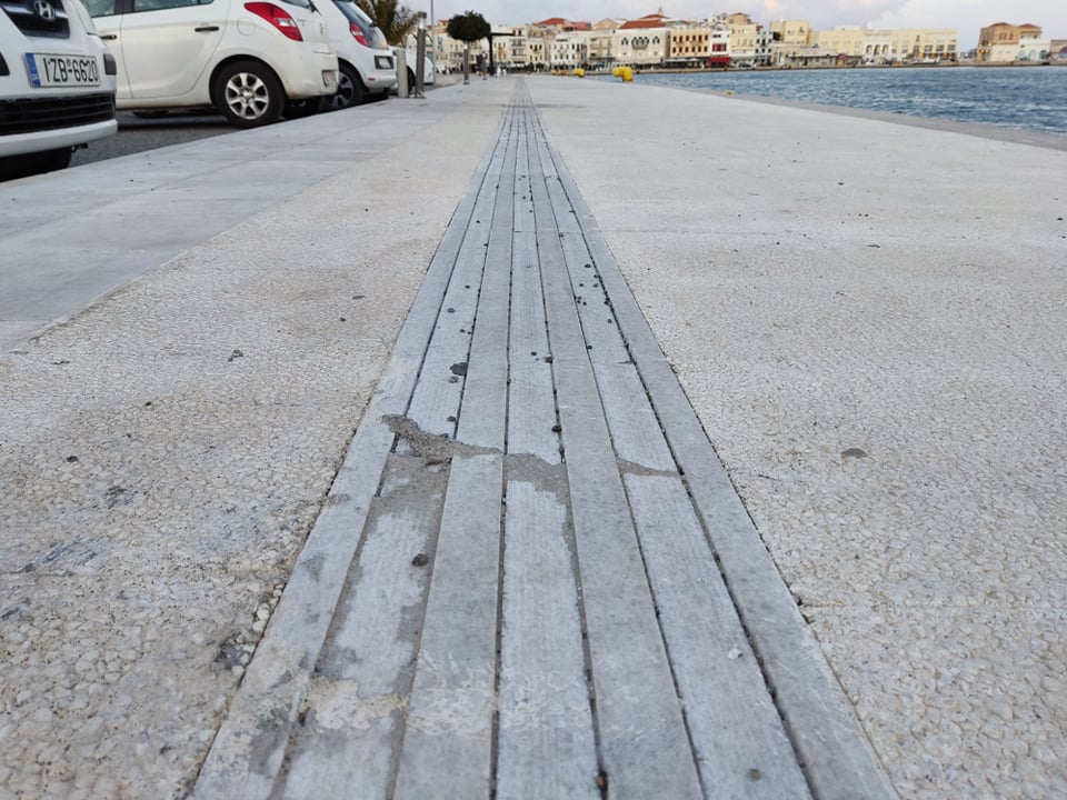 Με προσοχή και υπευθυνότητα οφείλει το Λιμενικό Ταμείο Σύρου να εξετάσει τον τρόπο αντικατάστασης των κατεστραμμένων οδηγών όδευσης τυφλών στο παραλιακό μέτωπο της Ερμούπολης, προκειμένου στο νησί να μπορούν να εξυπηρετούνται πολίτες με προβλήματα όρασης.