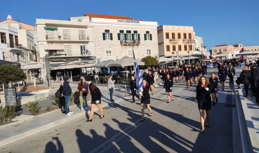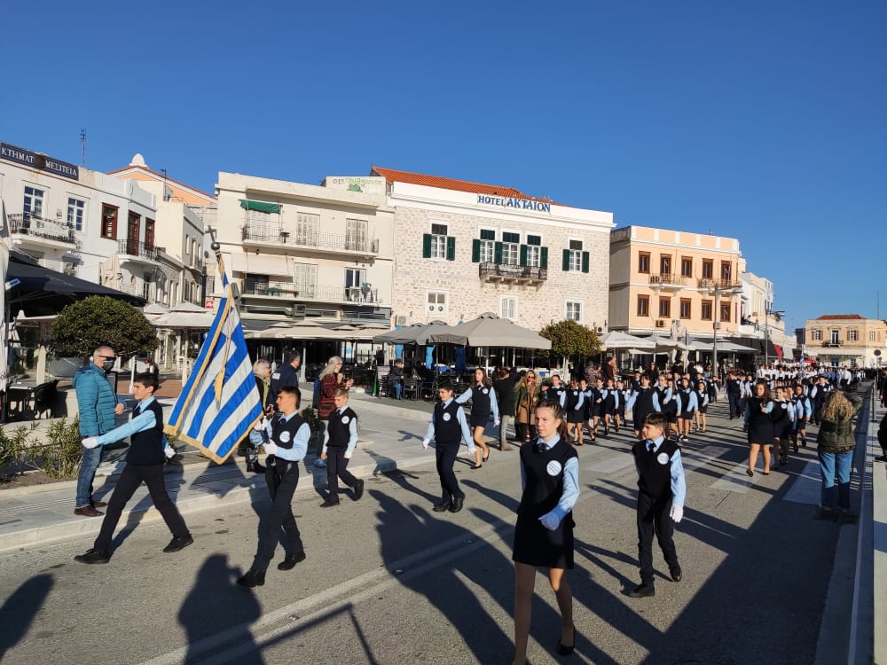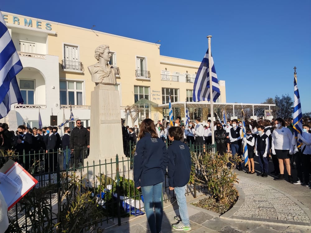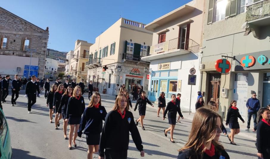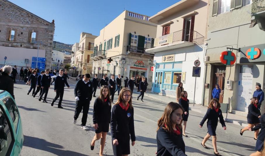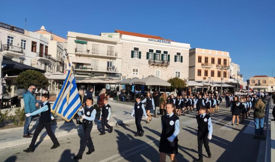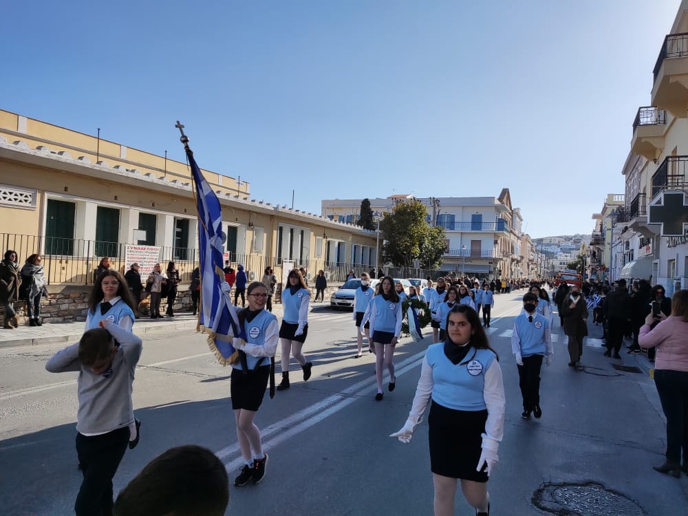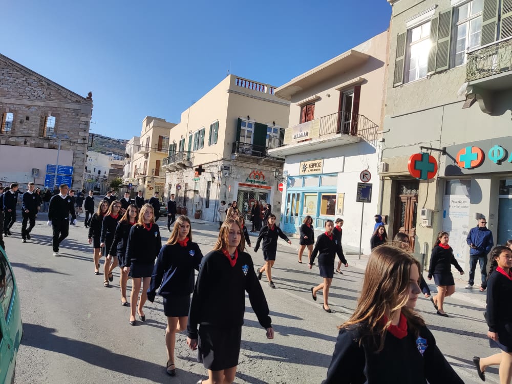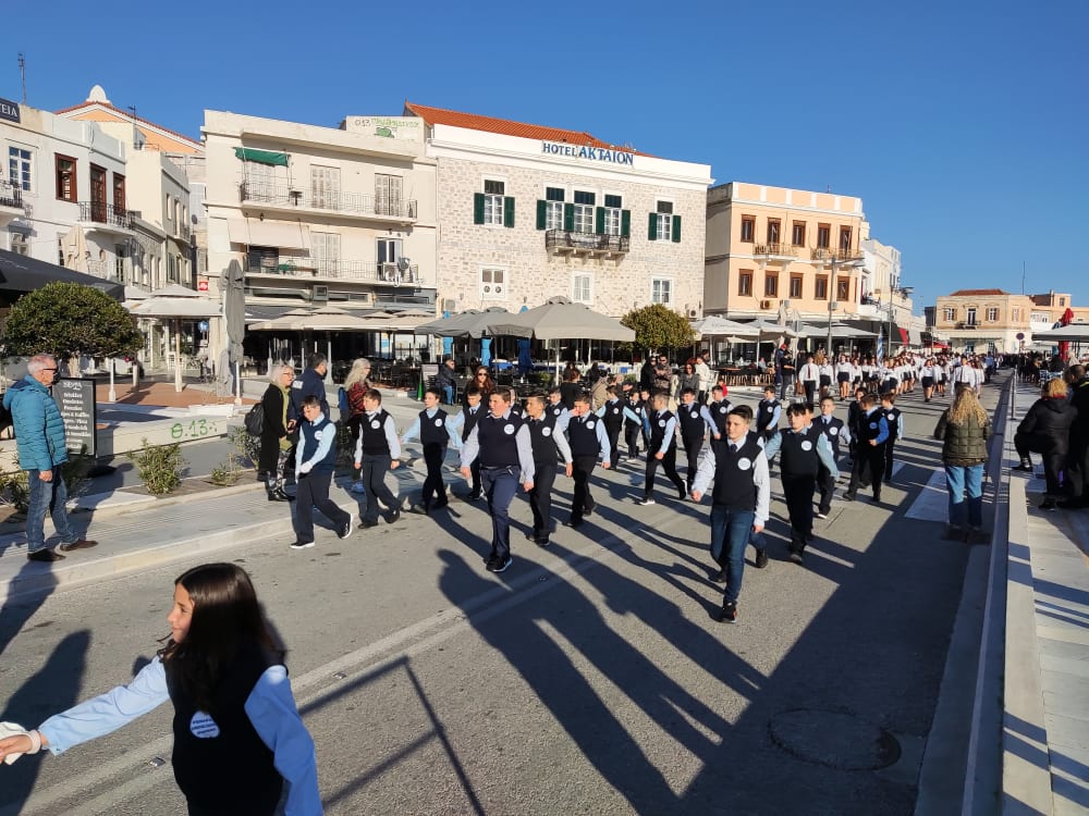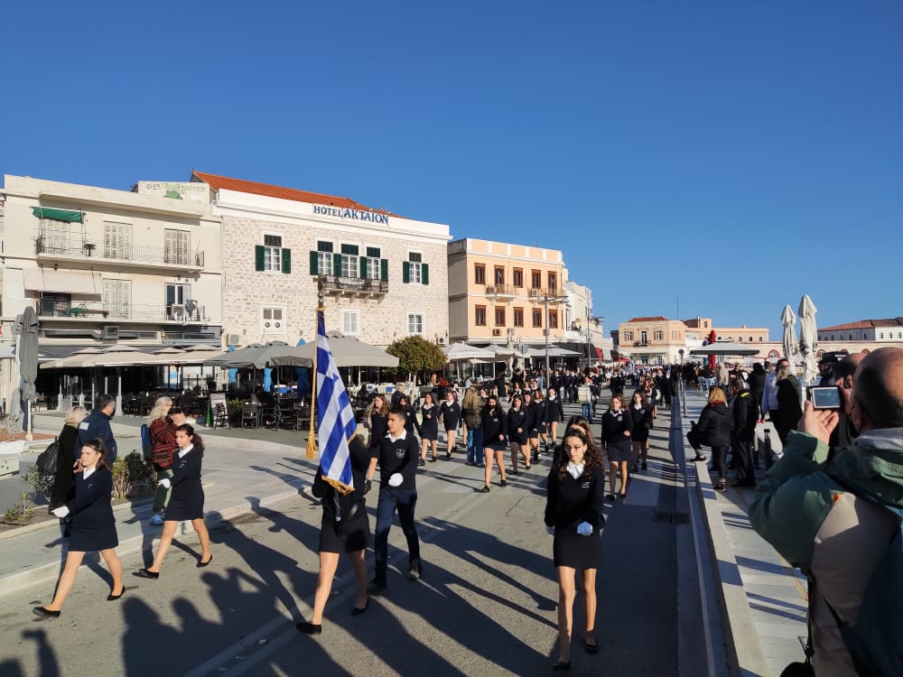 Μετά από δύο έτη πανδημίας, οι μαθητές πραγματοποιούν κανονικά τη στεφάνωση, τηρώντας τα μέτρα προστασίας ενάντια στον κορωνοϊό. Σύμφωνα με το πρόγραμμα της στεφάνωσης οι μαθητές ξεκίνησαν από την πλατεία Ηρώων και σταδιακά φθάνουν στο κέντρο της Ερμούπολης.