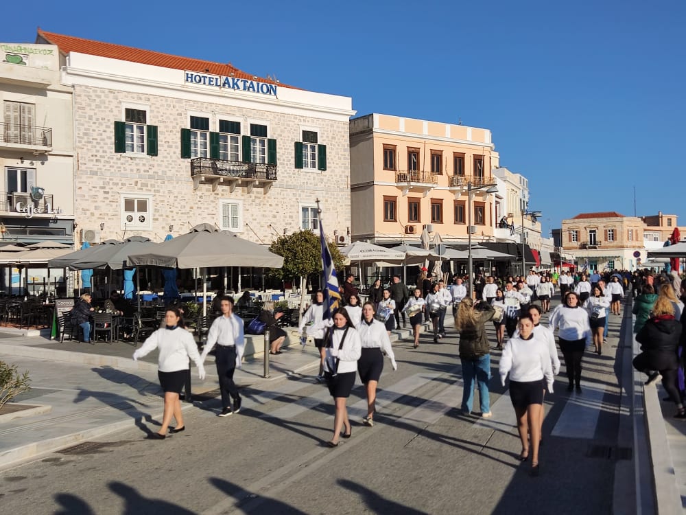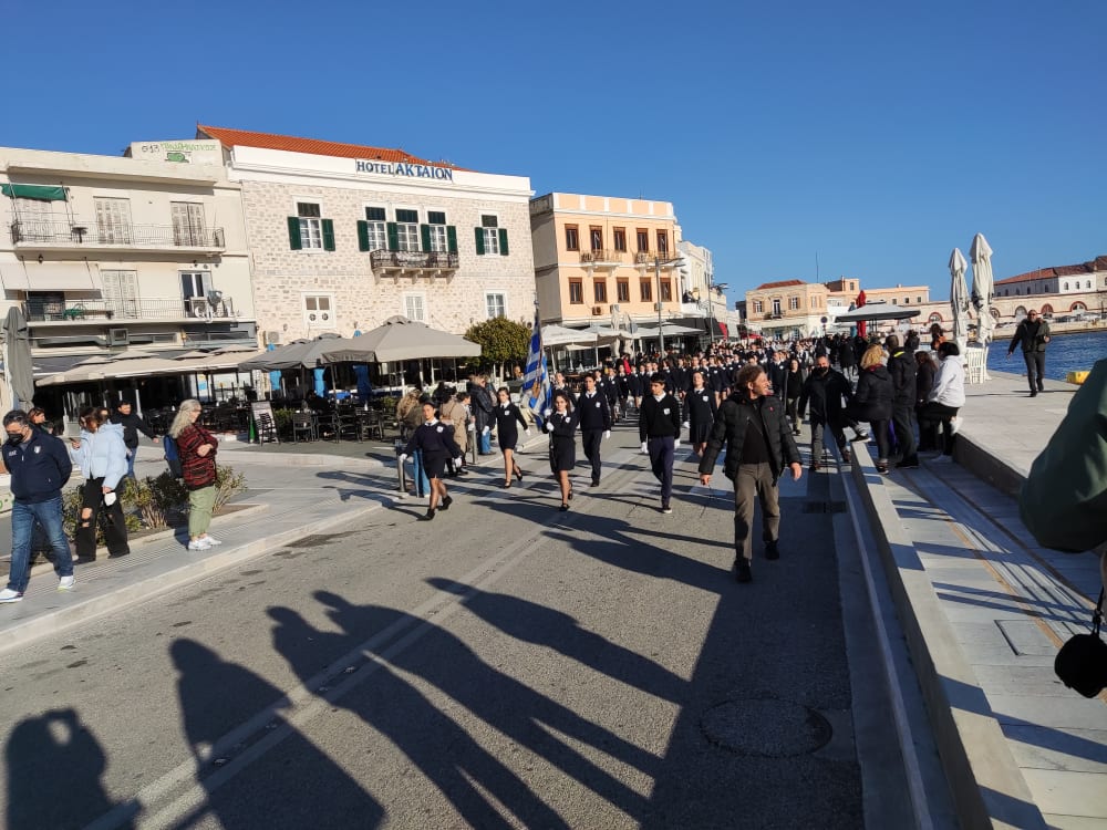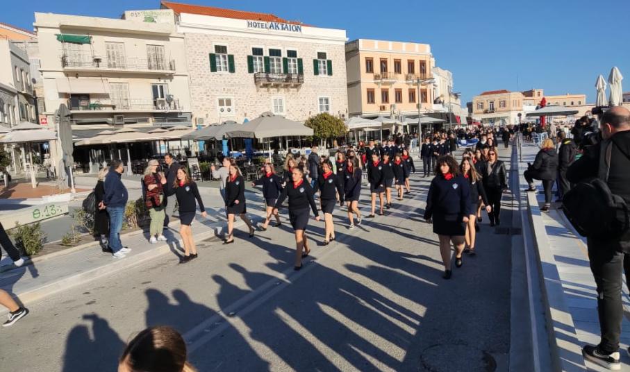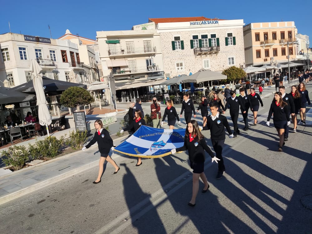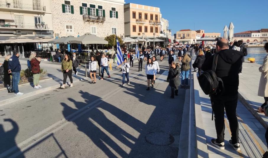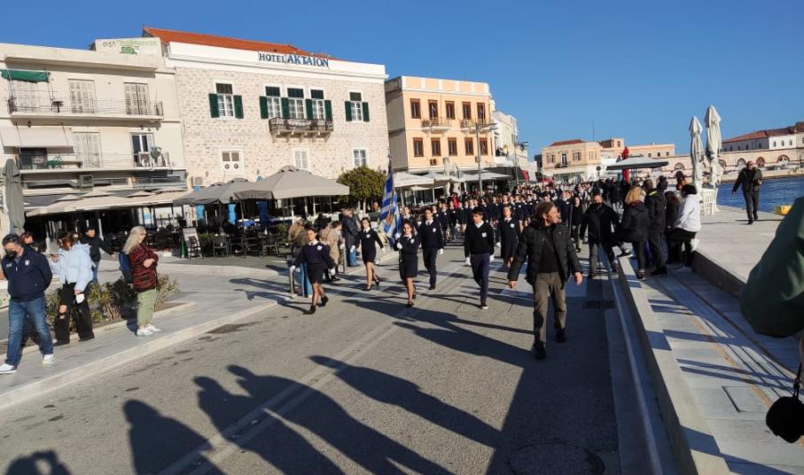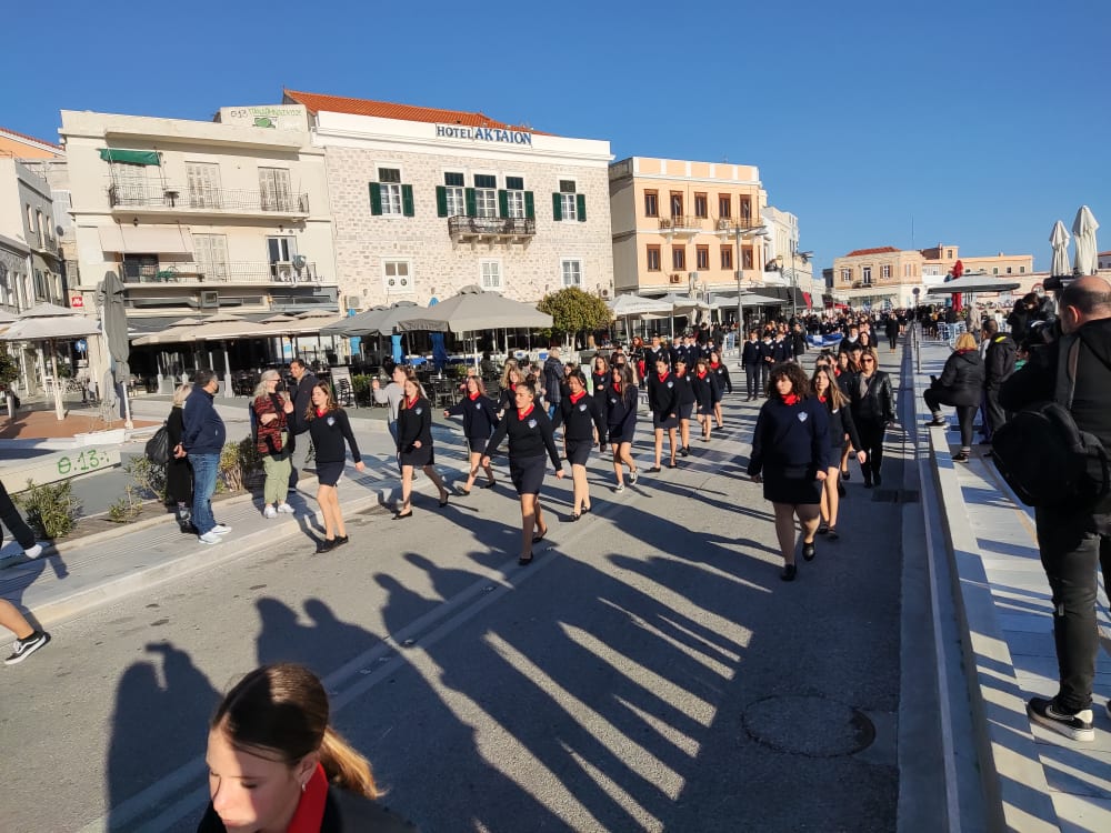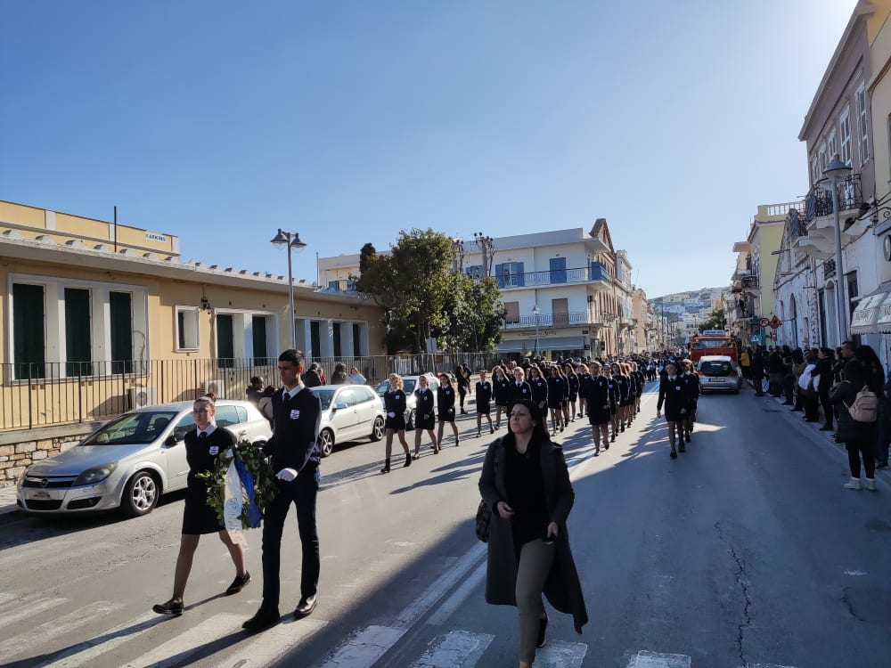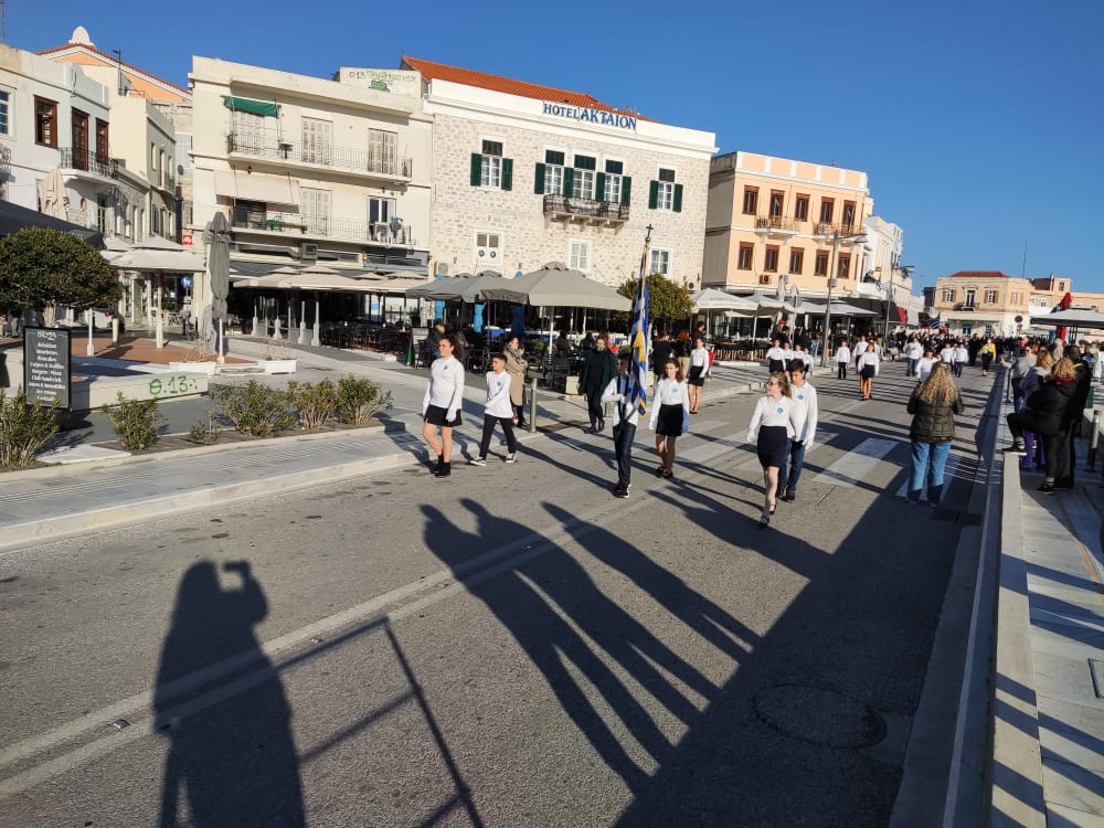 Μετά από δύο έτη πανδημίας, οι μαθητές πραγματοποιούν κανονικά τη στεφάνωση, τηρώντας τα μέτρα προστασίας ενάντια στον κορωνοϊό. Σύμφωνα με το πρόγραμμα της στεφάνωσης οι μαθητές ξεκίνησαν από την πλατεία Ηρώων και σταδιακά φθάνουν στο κέντρο της Ερμούπολης.