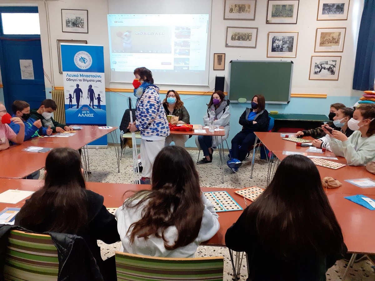 Οι εκπαιδεύτριες κυρίες Αβραάμ και Μπαξεβάνου, μαζί με την κα. Ρόζμαρι Αβρά, Πρωταθλήτρια Ελλάδος και κάτοχο Πανελληνίου ρεκόρ στη Δισκοβολία Γυναικών, στην Κατηγορία F12, ενημέρωσαν τα παιδιά για την οπτική αναπηρία και μέσω βιωματικού τρόπου, ενώ τους μίλησαν για την μεγάλη αξία που έχει ο Αθλητισμός και στη ζωή ενός ατόμου με οπτική αναπηρία. Η Διευθύντρια του Σχολείου κα. Λίτσα Παππά, με την υποστήριξη των δασκάλων, μερίμνησε για την άψογη φιλοξενία της Δράσης στους χώρους του σχολείου, ενώ στην ενημέρωση, συμμετείχε και ο εκπρόσωπος του Συλλόγου Γονέων και Κηδεμόνων, κ. Γιώργος Βλαχογιάννης.