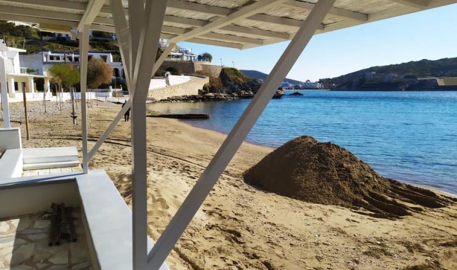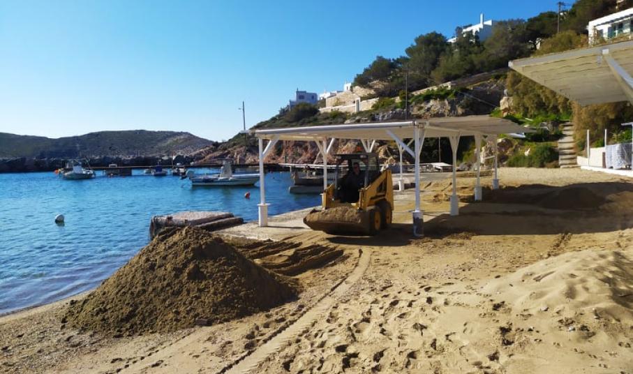 Η εικόνα της μικρής παραλίας μετά από έναν ιδιαίτερα έντονο χειμώνα είχε συγκεντρώσει αρκετά προβλήματα, με το βασικότερο, να αφορούσε στη “μεταφορά” της άμμου σε συγκεκριμένα σημεία. Αναλυτικότερα, αποτέλεσμα των έντονων καιρικών φαινομένων και του ισχυρού ανέμου καθ΄ όλη τη διάρκεια του χειμώνα ήταν να σχηματιστούν “λοφίσκοι” από άμμο στις επιχειρήσεις της περιοχής, η οποία “παρασύρθηκε” από το κύριο μέρος της παραλίας.
