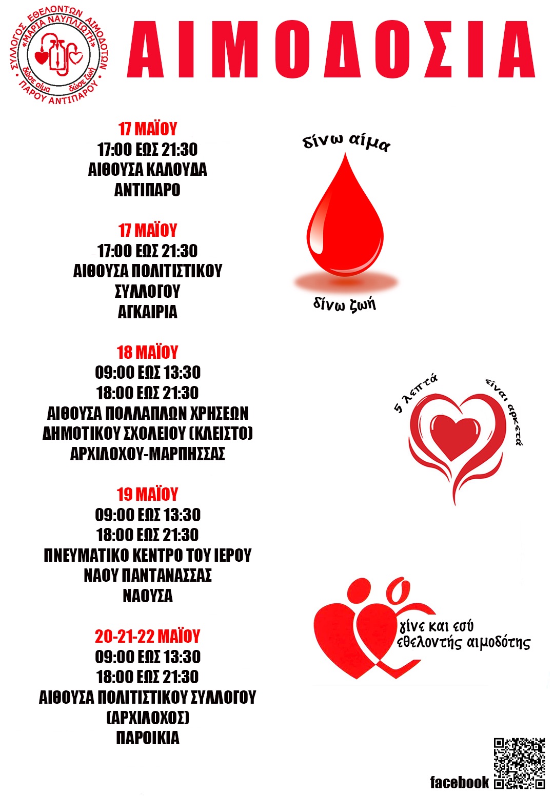 Αναλυτικά το πρόγραμμα της Εαρινής Αιμοδοσίας Πάρου.