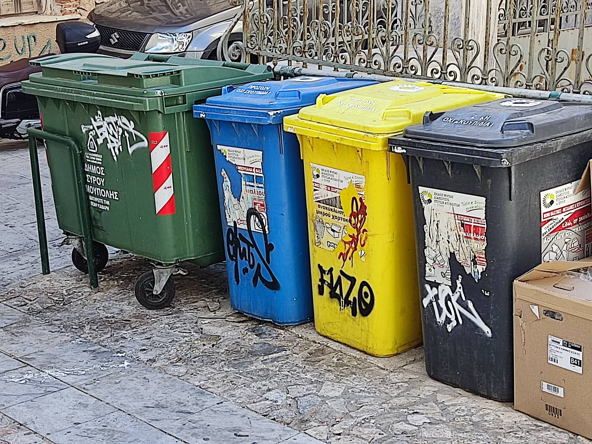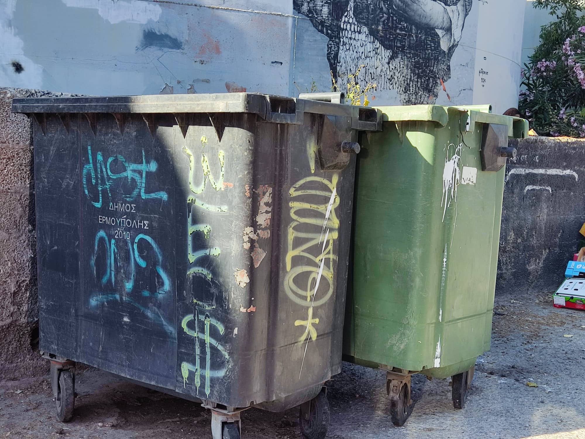 Έντονη δυσοσμία από ορισμένους κάδους απορριμμάτων σε αρκετές περιοχές της Σύρου εξαιτίας των υψηλών θερμοκρασιών
