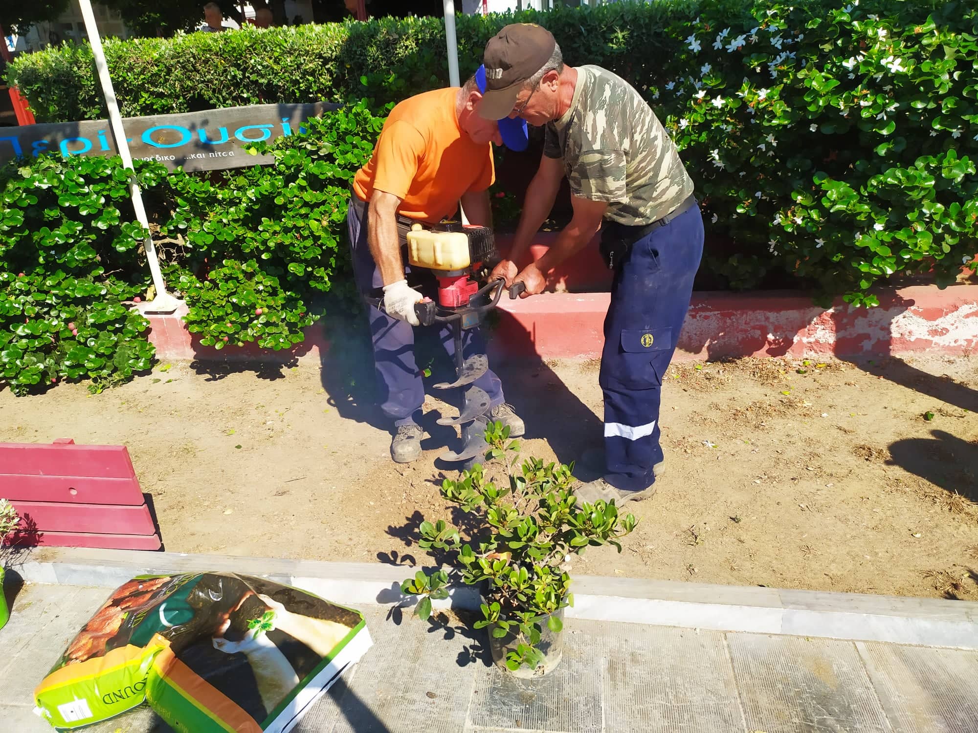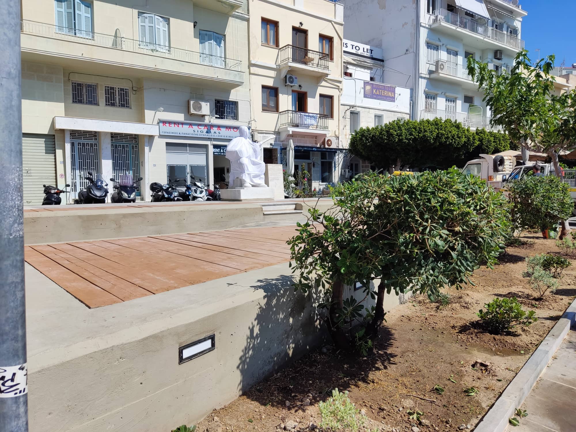 Εν όψει της εκδήλωσης των αποκαλυπτηρίων του αγάλματος το Σάββατο το μεσημέρι, οι εργάτες του Δήμου προχώρησαν σε φύτευση καλλωπιστικών φυτών και μικρών δέντρων ώστε να ομορφύνουν το σημείο, “πρασινίζοντάς” το.