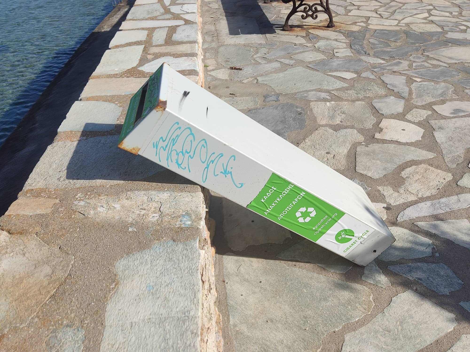 Φθορές καταγράφονται στο παραλιακό τμήμα του Γαλησσά, καθώς άγνωστοι προέβησαν σε “ξήλωμα” του κάδου ανακύκλωσης αποτσίγαρων από τη βάση του.