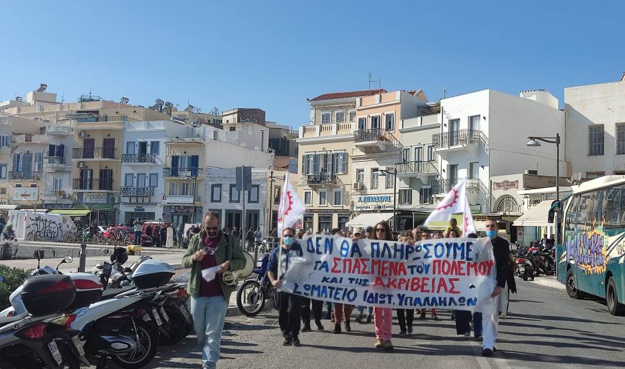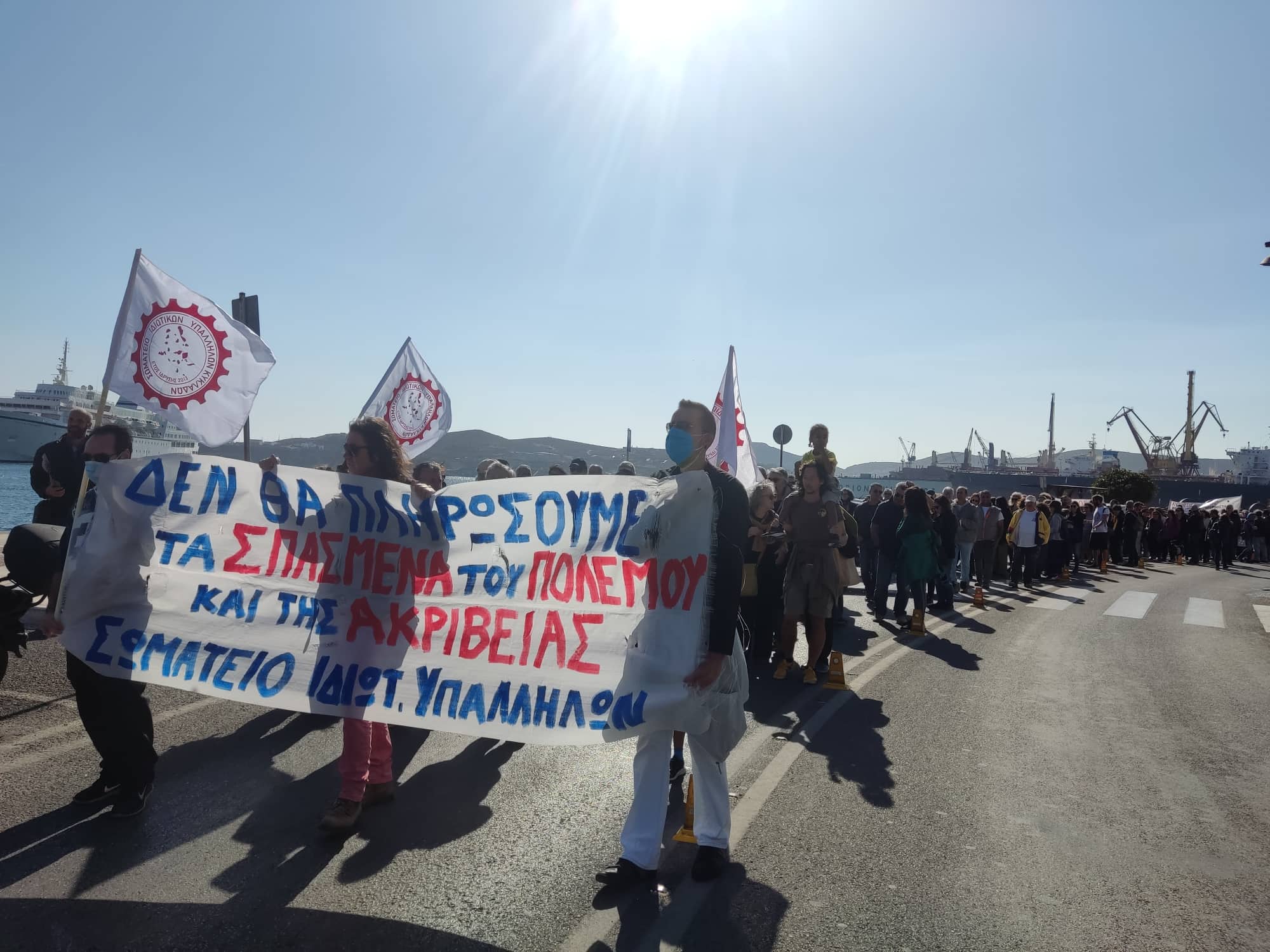 Τη δική της φωνή ένωσε χθες η Σύρος με τις απεργιακές κινητοποιήσεις της χώρας, με φόντο την οικονομική κατάσταση που αντιμετωπίζουν οι πολίτες εξαιτίας της ενεργειακής κρίσης, που έχει φέρει συνέπειες σε κάθε επίπεδο.