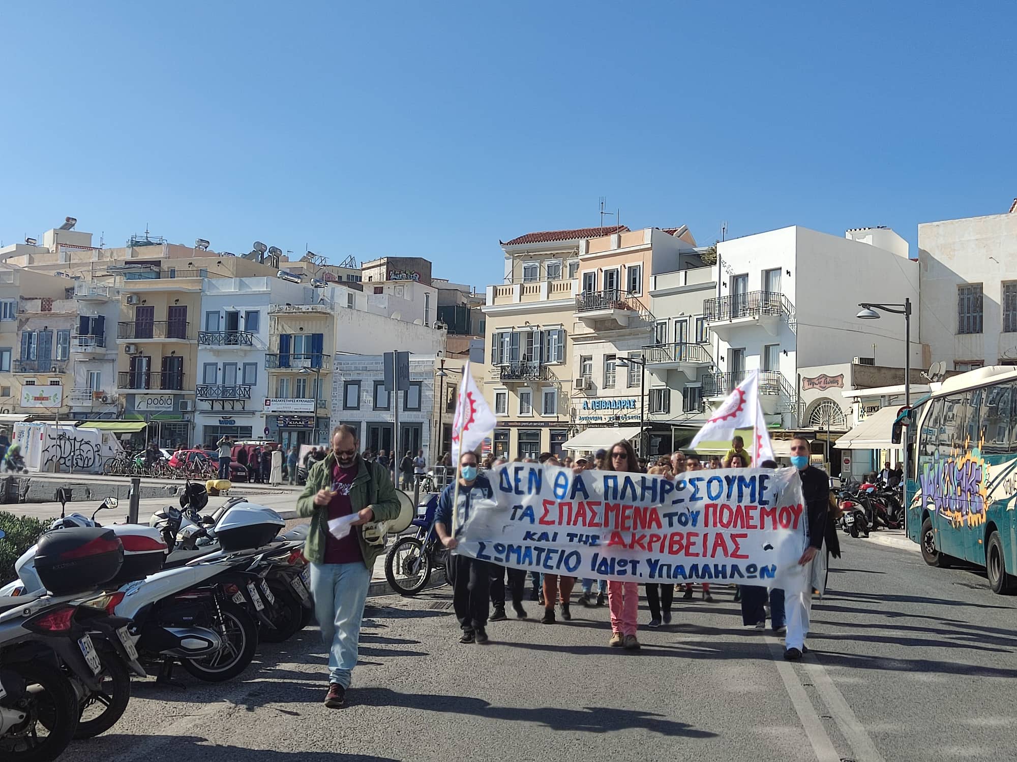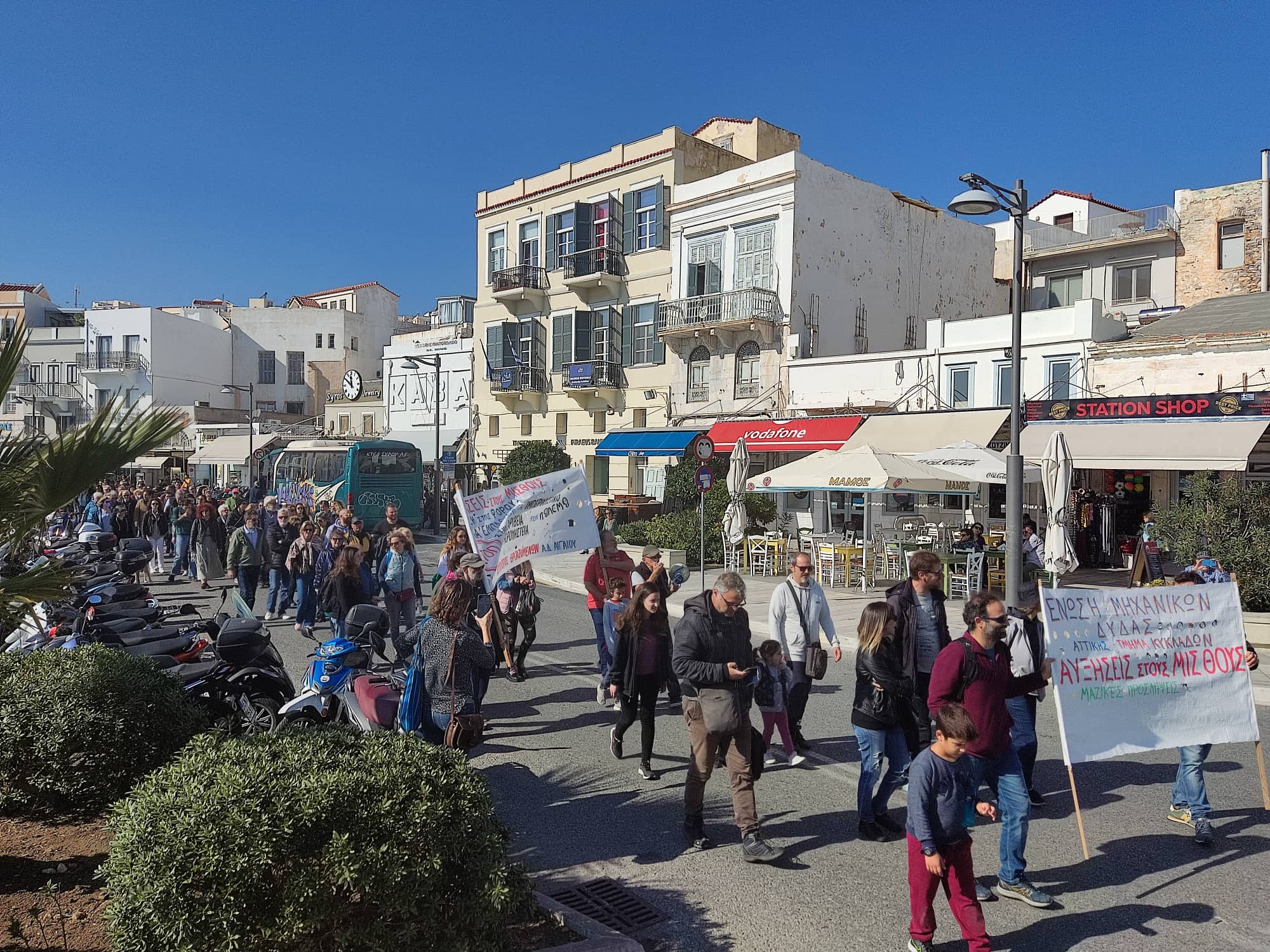 Σημειώνεται πως οι συμμετέχοντες στην απεργία συναντήθηκαν στο κτίριο της Αποκεντρωμένης Διοίκησης Αιγαίου και στη συνέχεια πραγματοποίησαν πορεία προς το κέντρο της πόλης, διερχόμενοι από την παραλιακή οδό.