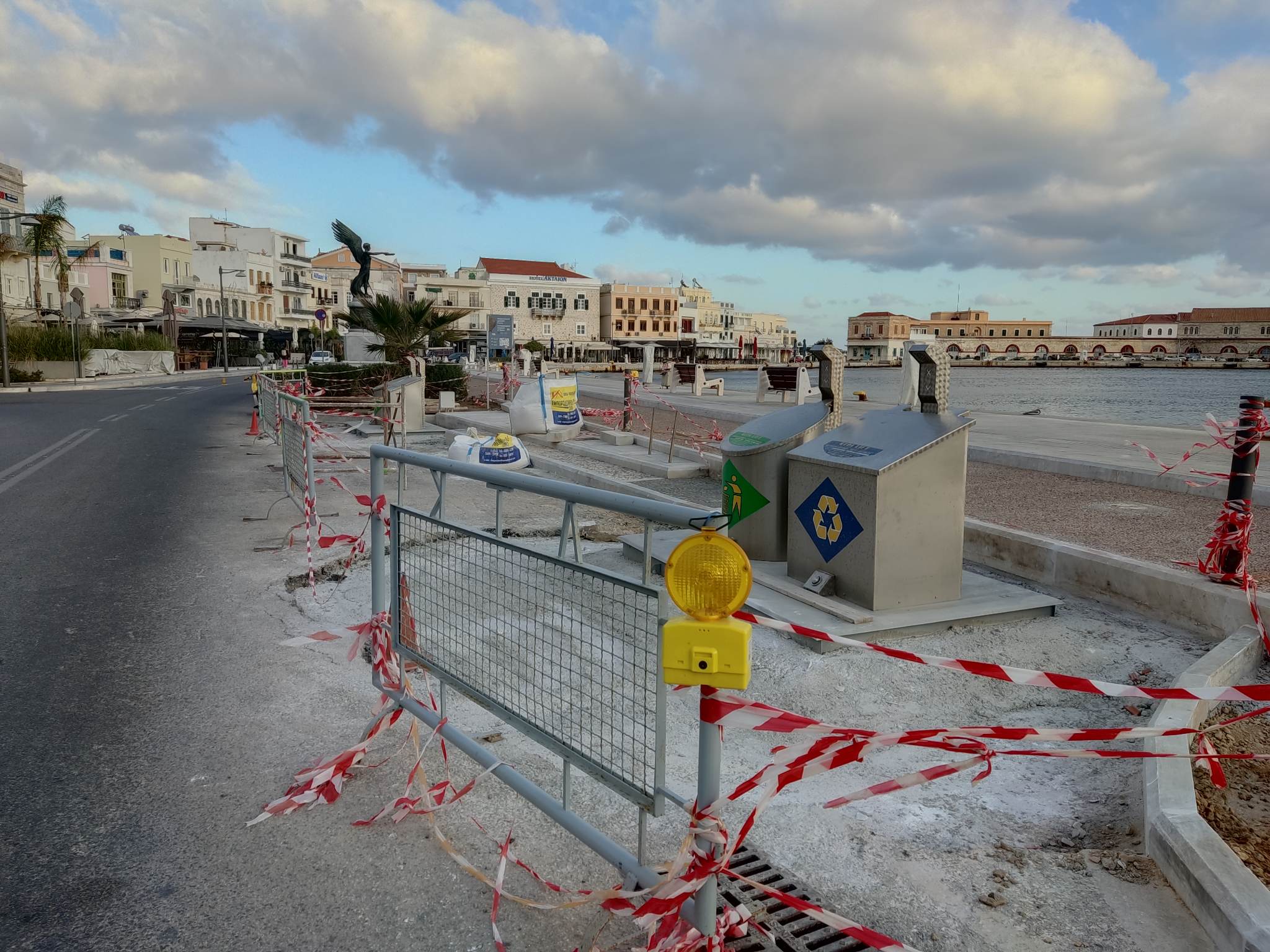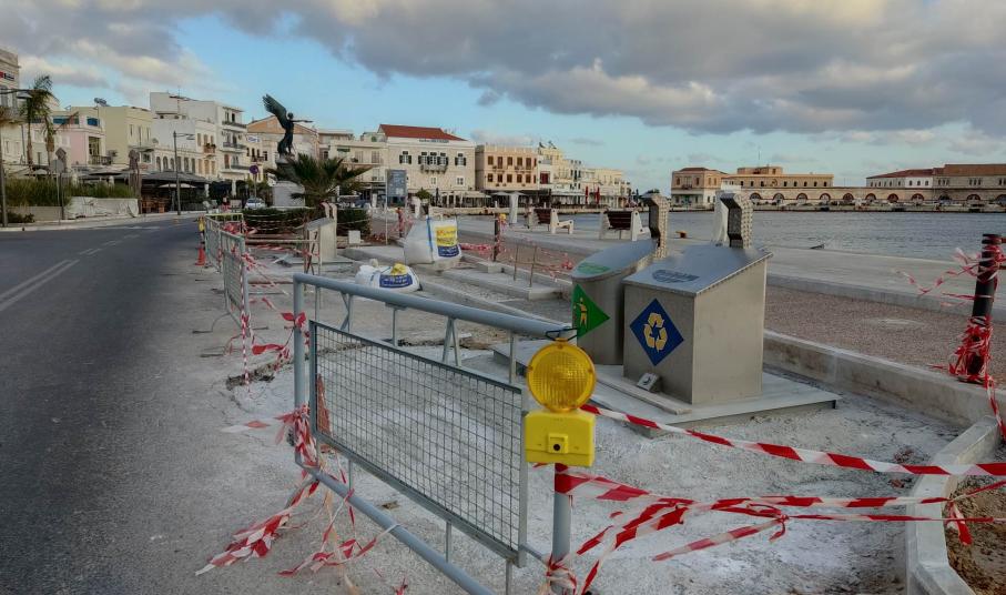 “Ανοικτό παραμένει μέχρι σήμερα το τμήμα που περιβάλλει τα συστήματα βυθιζόμενων κάδων στο παραλιακό τμήμα της Ερμούπολης, με ό,τι αυτό συνεπάγεται για την εικόνα της περιοχής ενόψει των Χριστουγέννων.