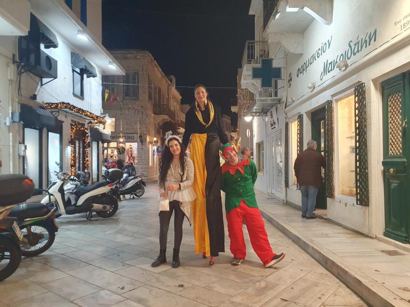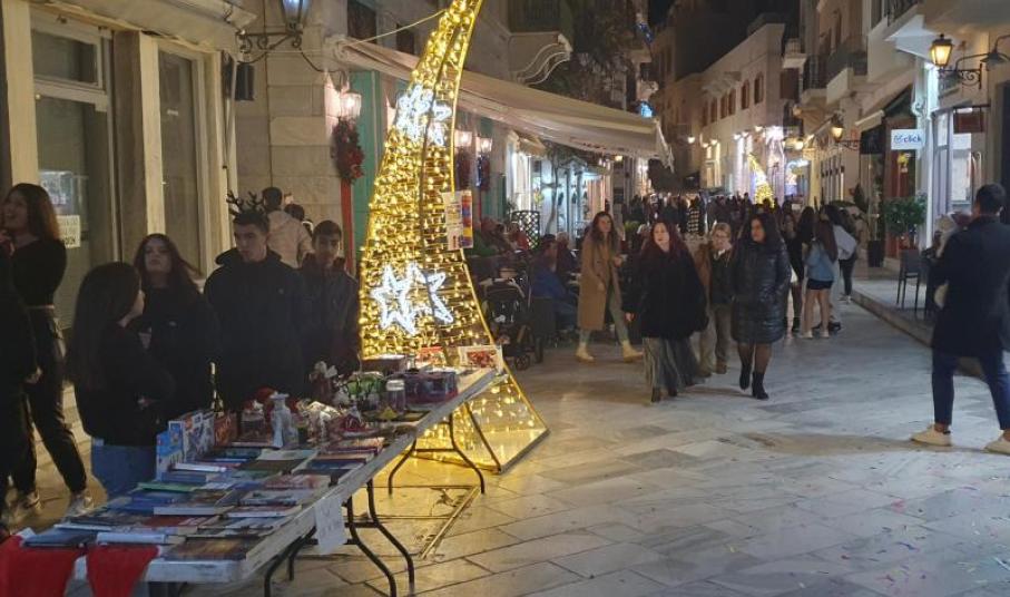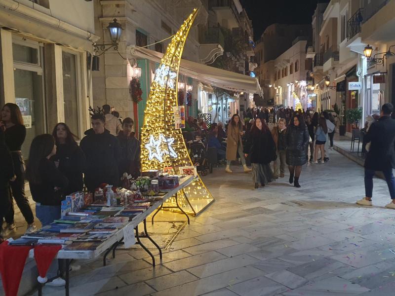 Στη μαγεία των Χριστουγέννων είχαν την ευκαιρία να ταξιδέψουν μικροί και μεγάλοι που βρέθηκαν στον πεζόδρομο την παραμονή της μεγάλης θρησκευτικής γιορτής, καθώς ο εμπορικός κόσμος είχε επιφυλάξει όμορφες εκπλήξεις για όλους. Εκτός από τη χριστουγεννιάτικη μουσική, ο Εμπορικός Σύλλογος Σύρου είχε φροντίσει να υπάρχουν διασκεδαστές για μικρά παιδιά, αλλά και ξυλοπόδαρος. Με αυτή την πρωτοβουλία και έχοντας εν μέρει πεζοδρομήσει την οδό Σταματίου Πρωίου στο αρχικό τμήμα της, οι πολίτες μπορούσαν να προχωρήσουν ευχάριστα σε αγορές και να απολαύσουν λίγες στιγμές ξεγνοιασιάς.