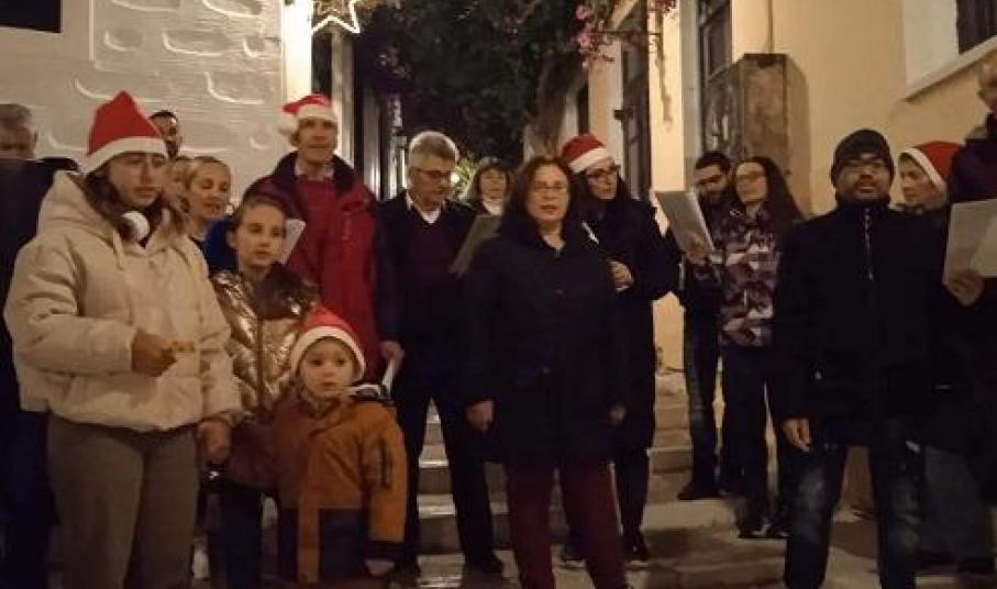 Χριστουγεννιάτικες μελωδίες και ευχές “σκορπίστηκαν” σε όλον τον οικισμό, κρατώντας ζεστή συντροφιά σε νέους και ηλικιωμένους. Τους ίδιους συνόδευσε ο πρόεδρος της Κοινότητας Άνω Σύρου, Πέτρος Ραουζαίος, ο οποίος και τους συνεχάρη για την όμορφη έκπληξη. Παρόμοιες μελωδίες χάρισε και ο Σύλλογος Μικρασιατών Σύρου στη γειτονιά του Ξηροκάμπου.