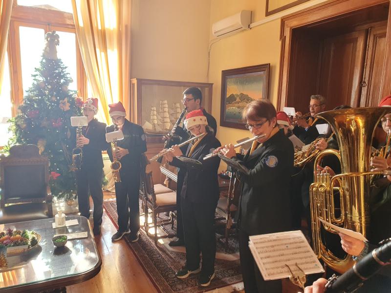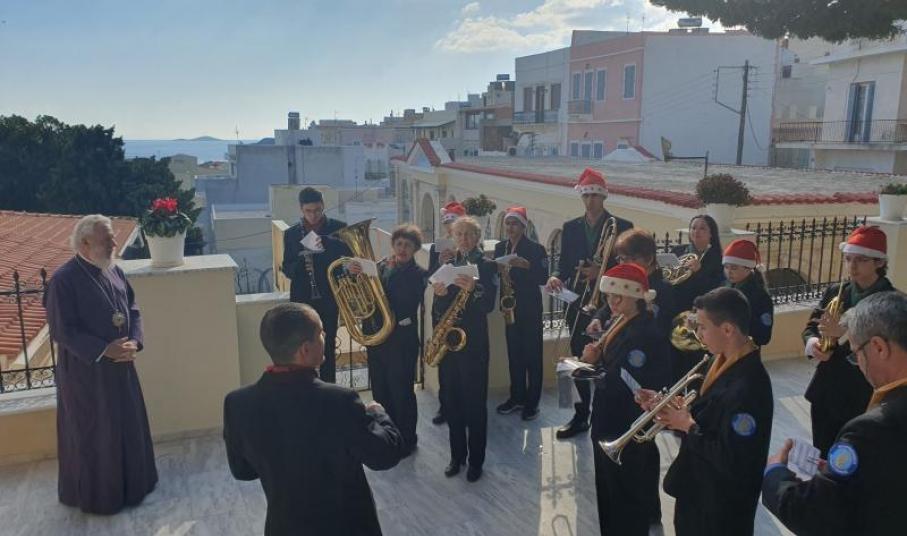 Ειδικότερα, για μια ακόμη χρονιά, τα μέλη της Φιλαρμονικής του Δήμου Σύρου – Ερμούπολης “τραγούδησαν” τα κάλαντα των Χριστουγέννων, μαγεύοντας με την ποιότητά τους όλον τον κόσμο που το πρωί του Σαββάτου βρέθηκε στην Ερμούπολη. Με αφετηρία τους την πλατεία Μιαούλη επισκέφθηκαν τον Δήμαρχο, Νίκο Λειβαδάρα, όπου στο γραφείο του τους υποδέχθηκαν αρκετοί αιρετοί, χειροκροτώντας και ευχαριστώντας τους για την πολύτιμη δουλειά που κάνουν. Η Φιλαρμονική της Σύρου διατηρεί τη θέση της στην πρώτη γραμμή σε κάθε εορταστική περίοδο, χαρίζοντας νότες αισιοδοξίας και χαράς σε μία συγκυρία που έχει δυσκολέψει αρκετούς συμπολίτες μας. Αμέσως μετά, η Φιλαρμονική κατευθύνθηκε στο Επισκοπικό Μέγαρο πλησίον του Ι.Ν. Μεταμορφώσεως, όπου τους υπέροχους μουσικούς υποδέχθηκε και χαιρέτησε ο Σεβασμιώτατος Μητροπολίτης Σύρου, κ. Δωρόθεος Β΄. Τα χριστουγεννιάτικα κάλαντα έφεραν συγκίνηση σε όλους, ενώ στον Μητροπολίτη ευχές απηύθυναν και εκπρόσωποι τοπικών Αρχών, Συλλόγων, Φορέων, καθώς επίσης αντιπροσωπείες μαθητών από τη Β΄ τάξη του Γυμνασίου των Εκπαιδευτηρίων ΔΕΛΑΣΑΛ Σύρου και από τον Παιδικό Σταθμό της Μητρόπολης “Στην Παλάμη του Θεού”.