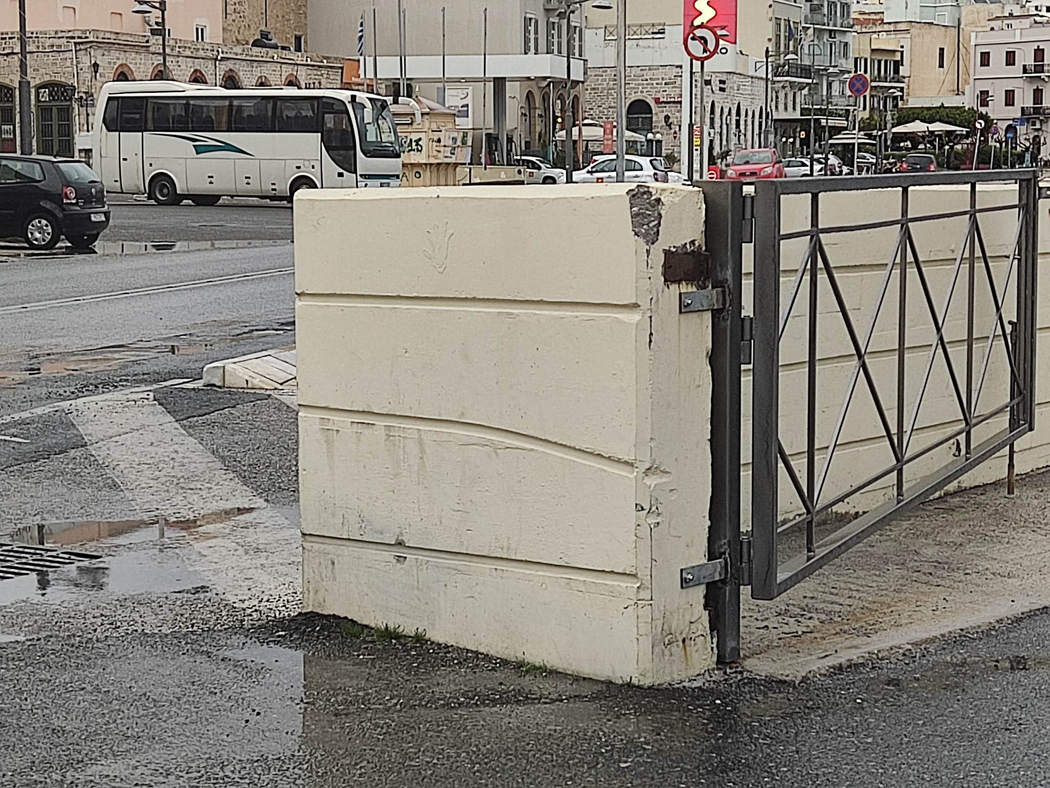 Δεδομένης της αναβάθμισης που δέχθηκαν προ καιρού τα στέγαστρα αναμονής επιβατών πλοίων, τα οποία και αποτελούν συνέχεια της εν λόγω περίφραξης, κρίνεται αναγκαία η ανάπτυξη εργασιών καθαρισμού και συντήρησης από την αρμόδια πλευρά.
