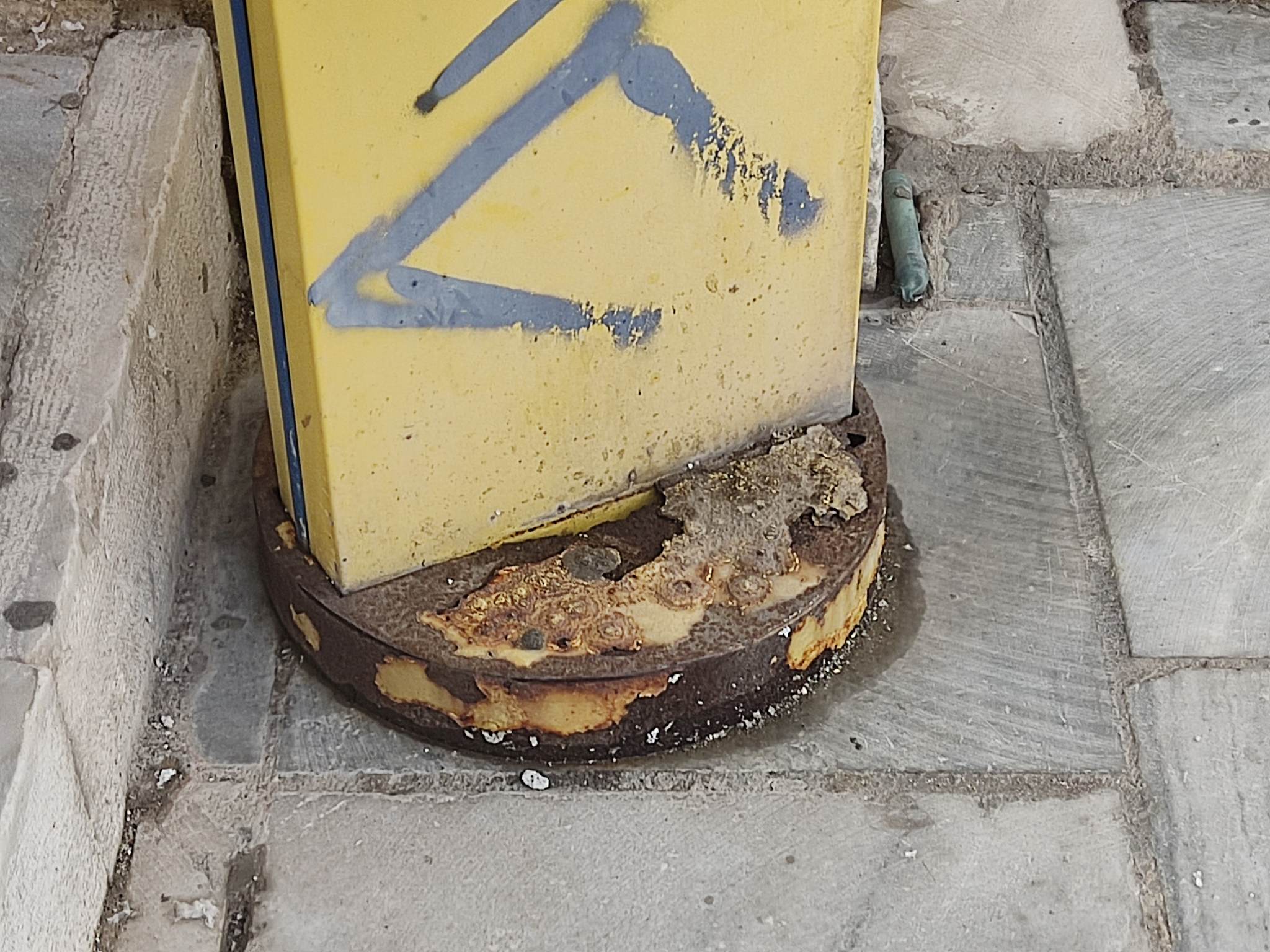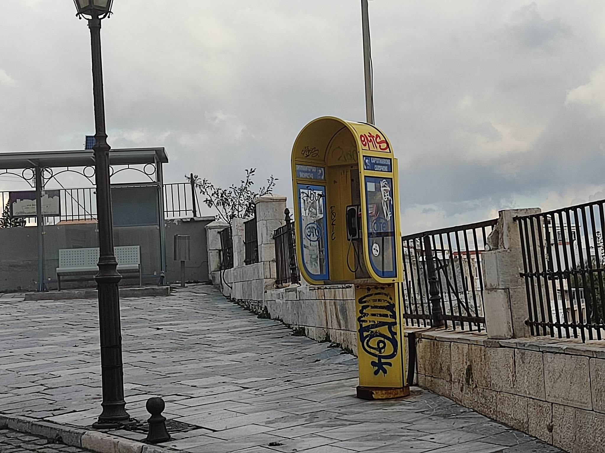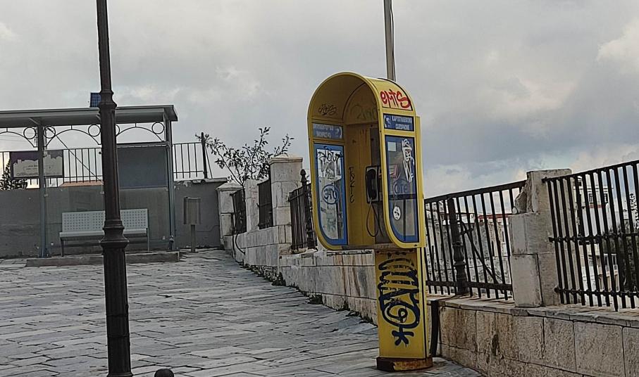 Ο εν λόγω τηλεφωνικός θάλαμος φέρει επιπλέον αρκετές φθορές, όπως παρομοίως και άλλοι θάλαμοι σε άλλα μέρη της πόλης και ενδεικτικά στην περιοχή όπισθεν του Ι.Ν. του Αγίου Νικολάου, που έχουν αποτελέσει μεγάλη “παραφωνία” στη γενικότερη εικόνα, αφού έχουν μετατραπεί σε “καμβά” για σπρέι και συνθήματα.