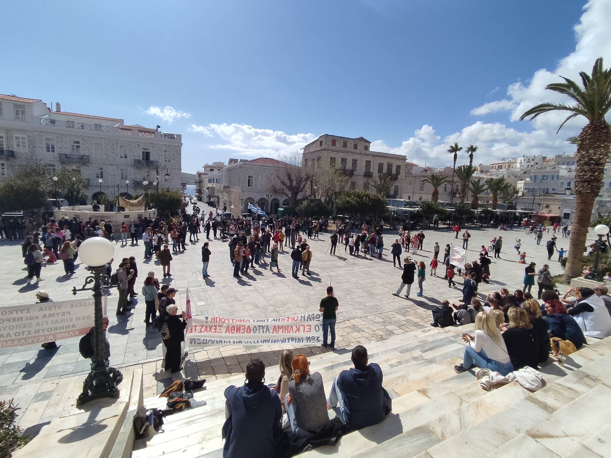 Δυναμικά διαδήλωσαν και χθες στο κέντρο της Ερμούπολης, πολίτες της Σύρου, ενάντια στην κυβέρνηση, με φόντο την τραγωδία στα Τέμπη που στέρησε τη ζωή σε πολλούς ανθρώπους, μετά τη σύγκρουση δύο αντίθετα διερχόμενων τρένων.