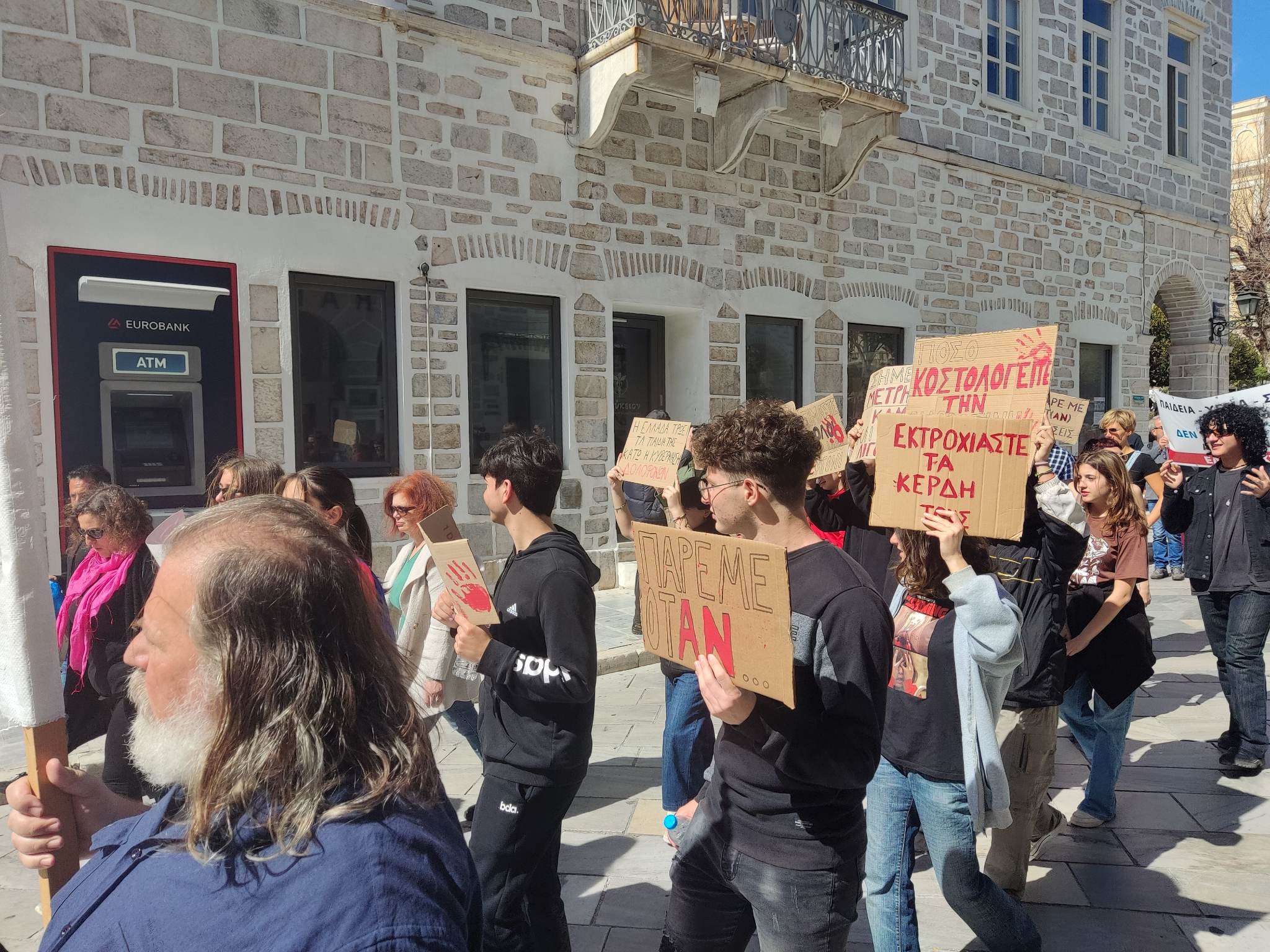 Στο πλαίσιο του καλέσματος που απηύθυναν αρκετοί Σύλλογοι και Σωματεία, φοιτητές, νέοι αλλά και μεγαλύτεροι άνθρωποι συγκεντρώθηκαν χθες το πρωί, στην πλατεία Μιαούλη, πραγματοποιώντας στη συνέχεια πορεία στις κεντρικές οδούς του ιστορικού κέντρου.