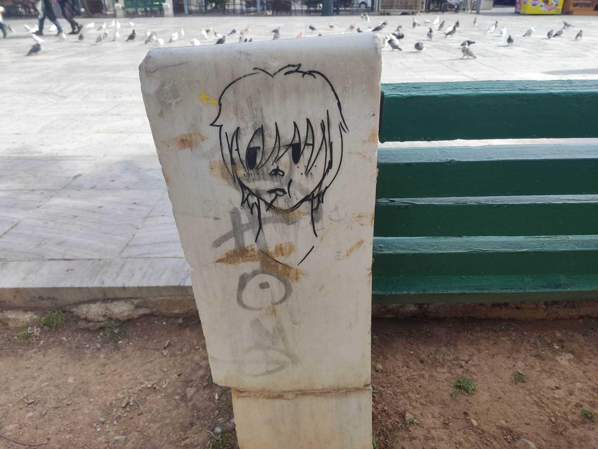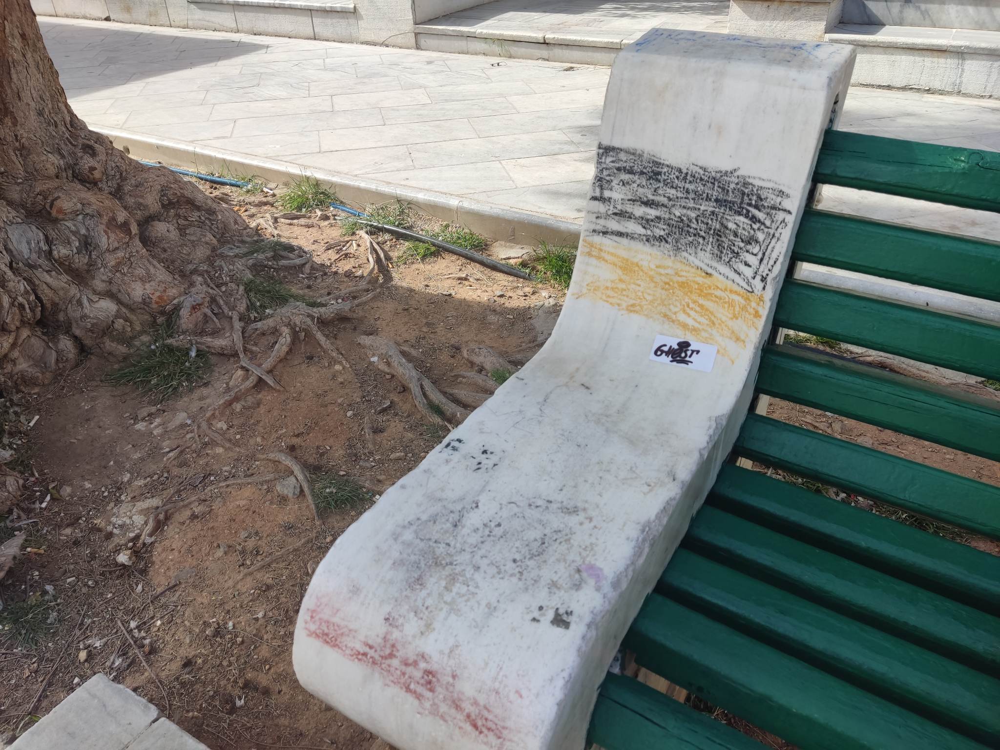 Ειδικότερα, τα μαρμάρινα τμήματά τους, έχουν μετατραπεί δυστυχώς σε “καμβά” εκτόνωσης αγνώστων, οι οποίοι παραβλέποντας συστηματικά την αξία της ύπαρξής τους στην πλατεία, αλλά και το γεγονός πως βρίσκονται σε ένα μεγάλο αρχιτεκτονικό μνημείο, προβαίνουν σε κινήσεις αχαρακτήριστες.