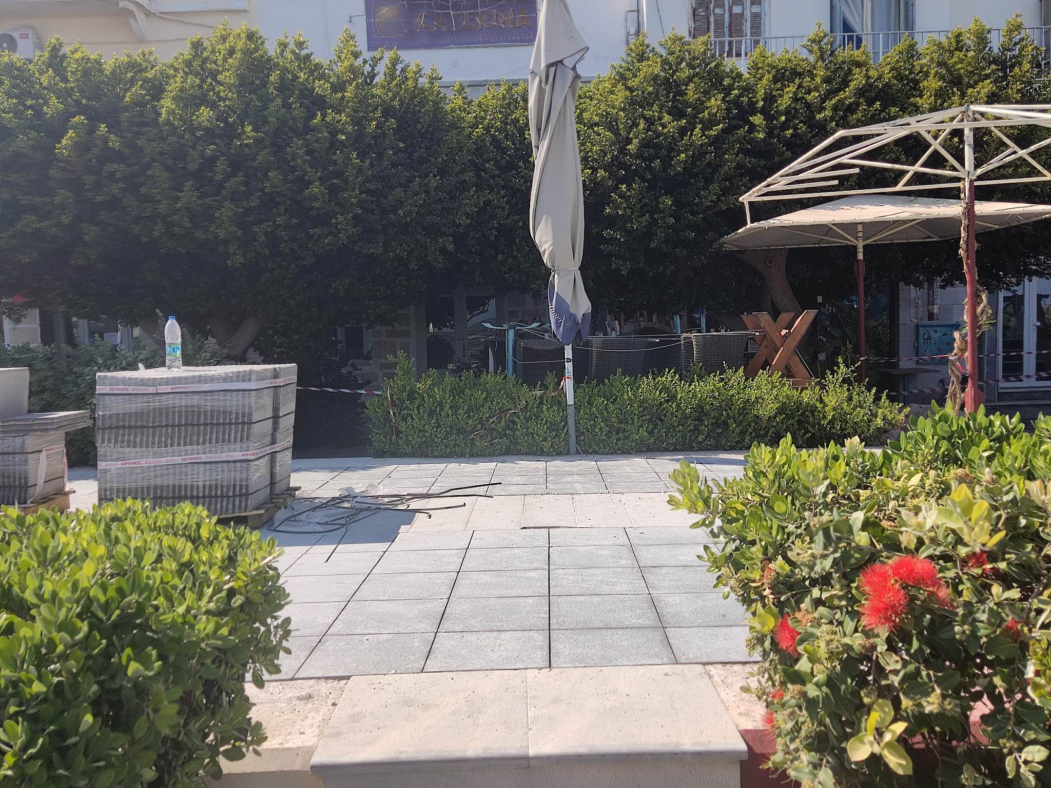 Σημαντικές και άκρως απαραίτητες βελτιωτικές παρεμβάσεις δέχεται η πλατεία Παπάγου με μέριμνα του Δήμου Σύρου – Ερμούπολης, όπου και αντικαθίστανται τα παλαιά δάπεδα που δημιουργούσαν προβλήματα στις επιχειρήσεις, με μοναδική “παραφωνία” στην περιοχή, να αποτελεί η ξύλινη “αψίδα”.