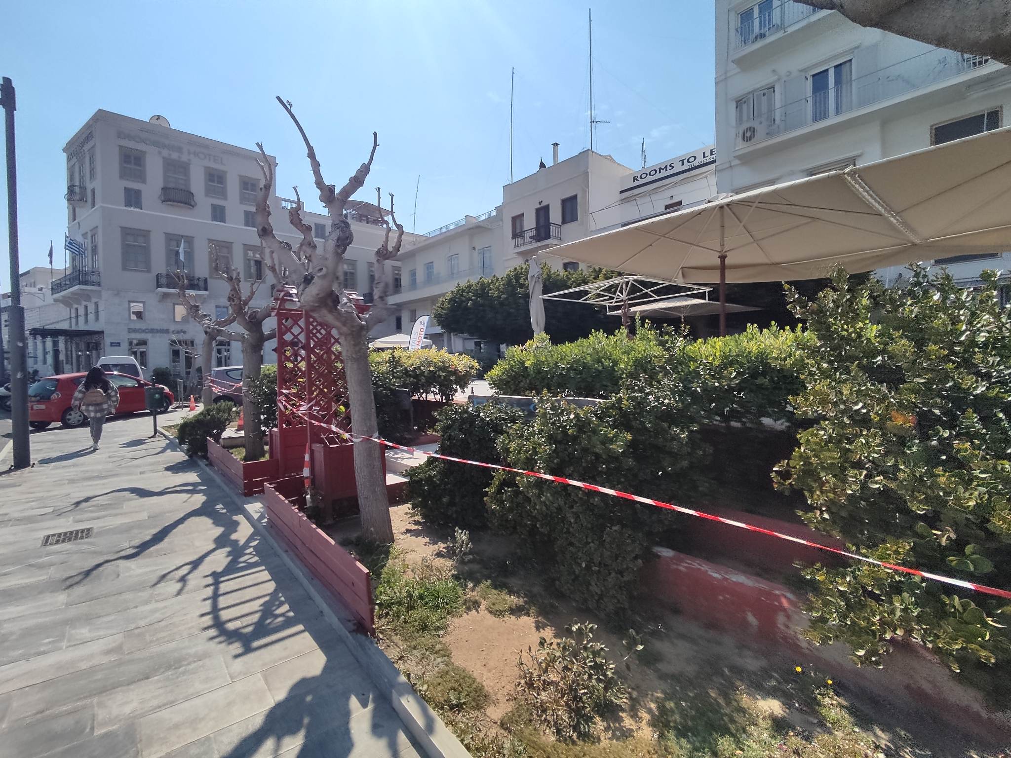 Ειδικότερα, παντελώς ακαλαίσθητη δείχνει η ξύλινη - χρώματος μπορντό - “αψίδα” σε κεντρικό τμήμα της εισόδου στην πλατεία Παπάγου, στο παραλιακό τμήμα της Ερμούπολης, η οποία και παραμένει στο σημείο, αν και ο χώρος δέχεται σημαντικές εργασίες για την αναβάθμισή του και την εξυπηρέτηση πεζών και επιχειρηματιών.