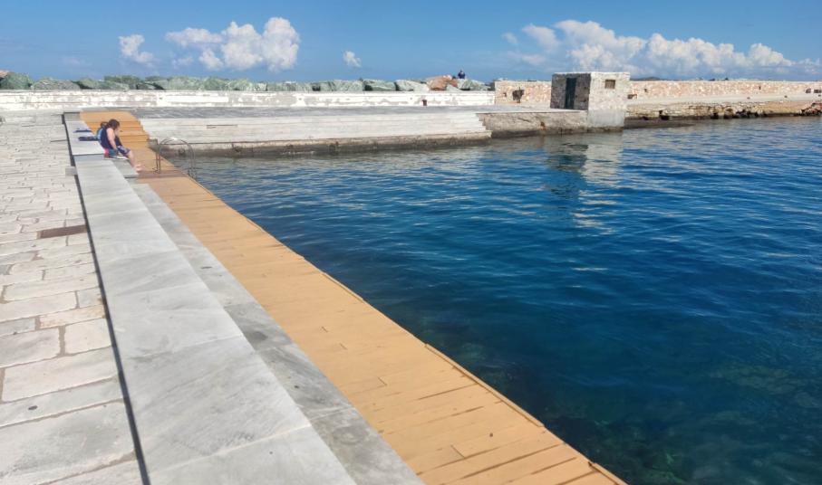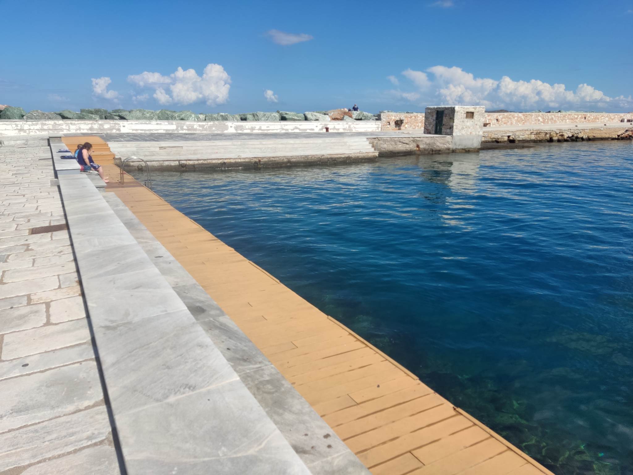 Εικόνα που δεν εμπνέει τους πολίτες για αναψυχή και για μπάνιο στη θέση Νησάκι, δείχνει να έχει πλέον, η ξύλινη πλατφόρμα που είναι τοποθετημένη στην αρχή του προσήνεμου μόλου, καθώς φέρει αρκετές φθορές.