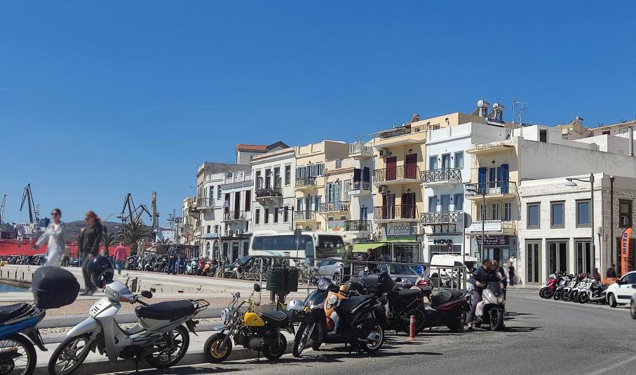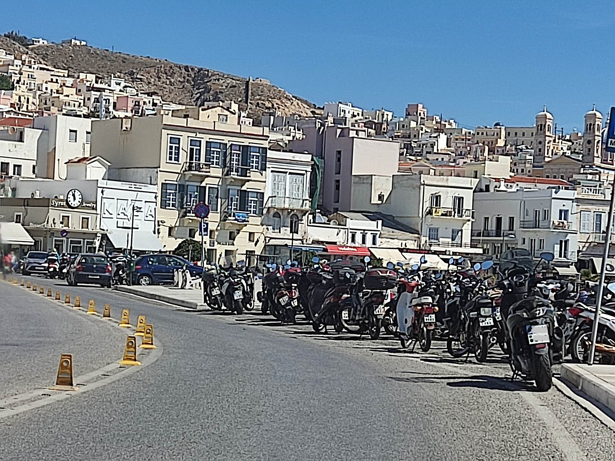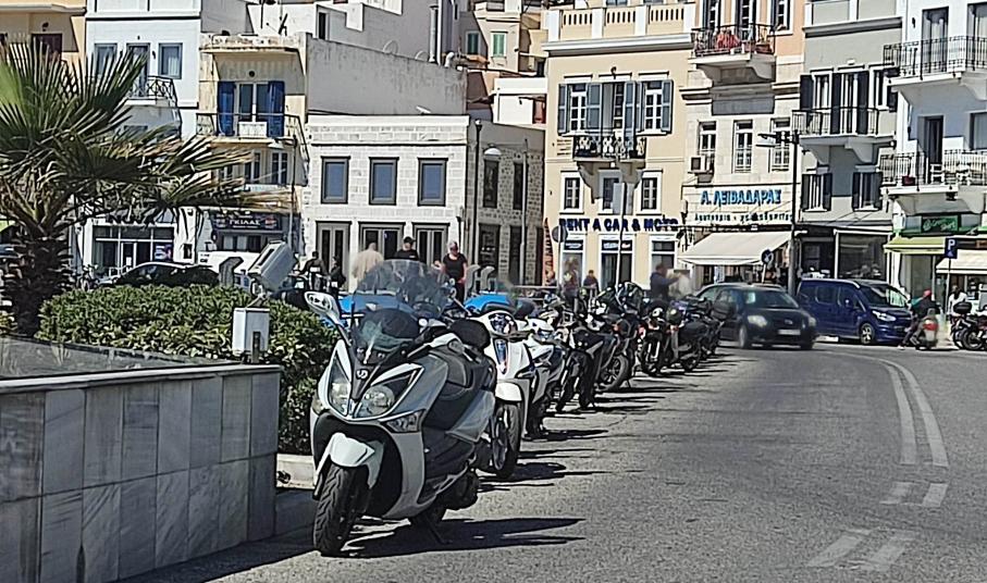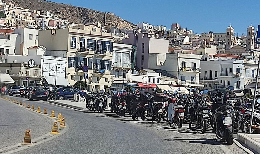 Ειδικότερα, η παραλιακή ζώνη “σηκώνει” το βάρος της στάθμευσης και συνολικά τον όγκο των δικύκλων, αφού δεν υπάρχει το περιθώριο αξιοποίησης του πρώτου τμήματος της οδού Σταματίου Πρωίου, με ό,τι αυτό συνεπάγεται για την εικόνα της Ερμούπολης το τρέχον διάστημα.