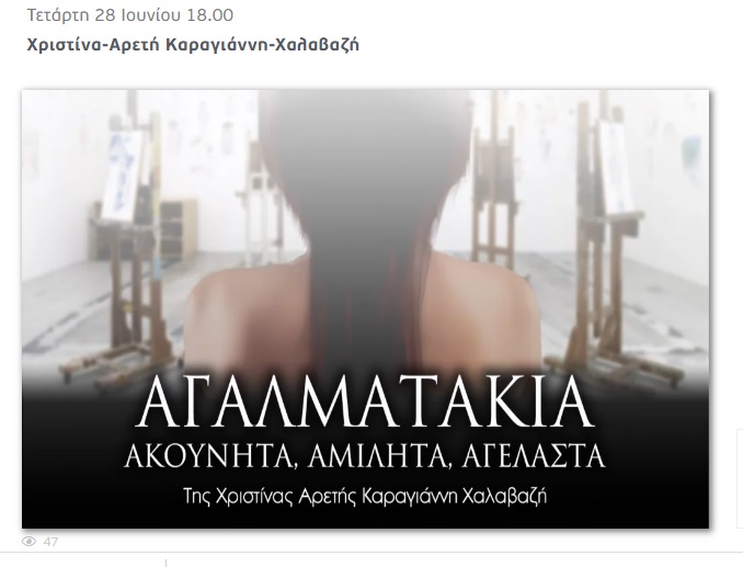 Ο σύνδεσμος της εκδήλωσης : https://inpolis.gr/agalmatakia-akounita-amilita-agelasta-tis-xristinas-aretis-karagianni-xalavazi/?fbclid=IwAR2QHqF0lkRv5-G85znETsjL_hRmgJhXxUvuyVoE9AFNwiHhK7D-gXnpVxY