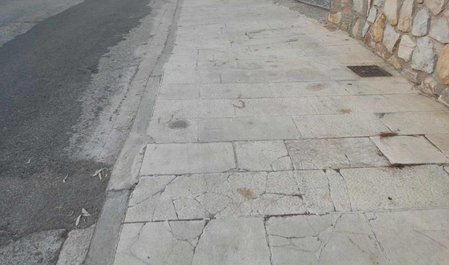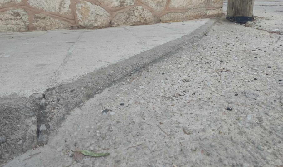 Παράλληλα, ορισμένες πλάκες στα πεζοδρόμια έχουν “σπάσει”, καθιστώντας το βάδισμα των πεζών δύσκολο, ενώ η μία ράμπα για διέλευση ΑΜΕΑ με αναπηρικά αμαξίδια μοιάζει να έχει υψομετρική διαφορά από το πεζοδρόμιο.